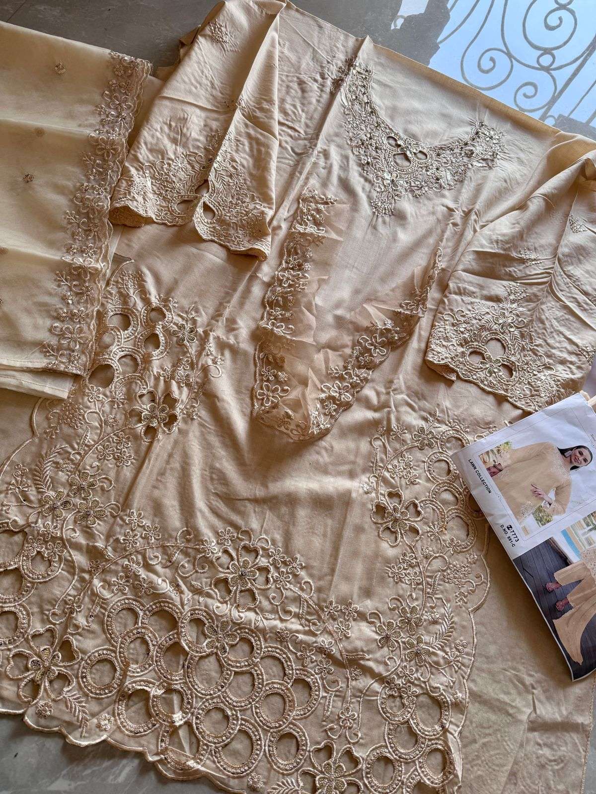 Cambric cotton cutwork handwork kameez with cotton inner😍 cotton unstitched bottoms cotton Inner provided❤️ Organza Embroidered cutwork dupatta🥰