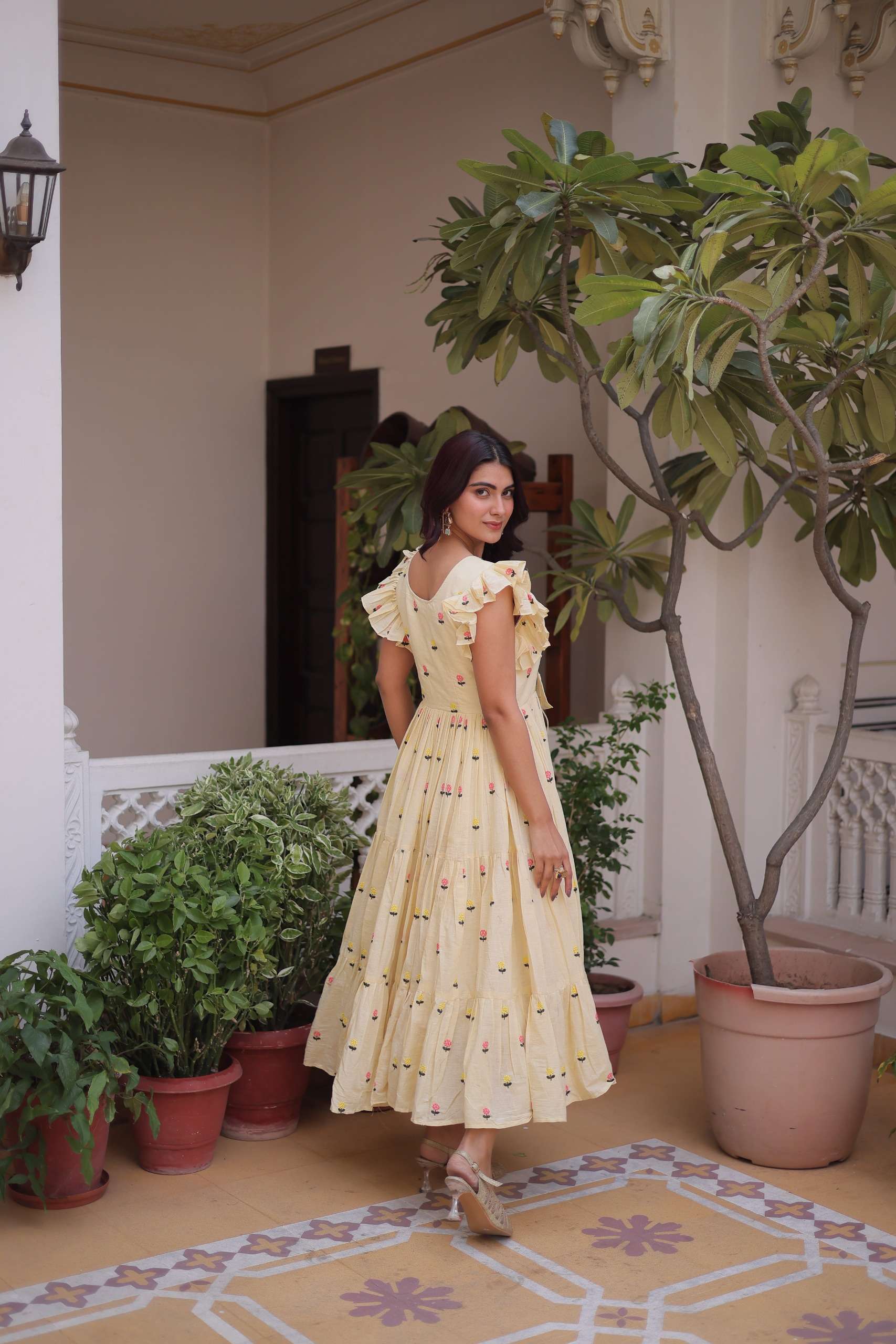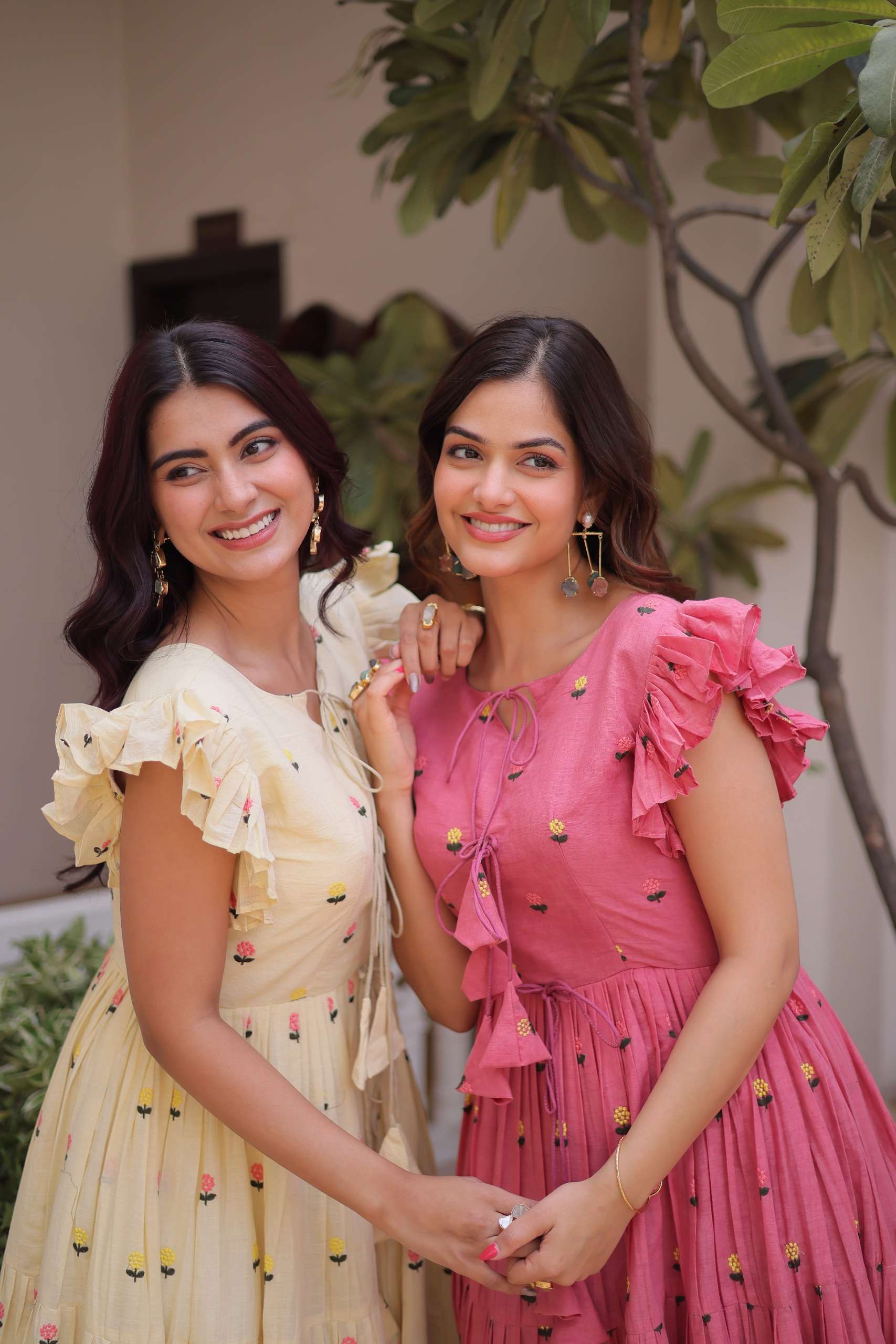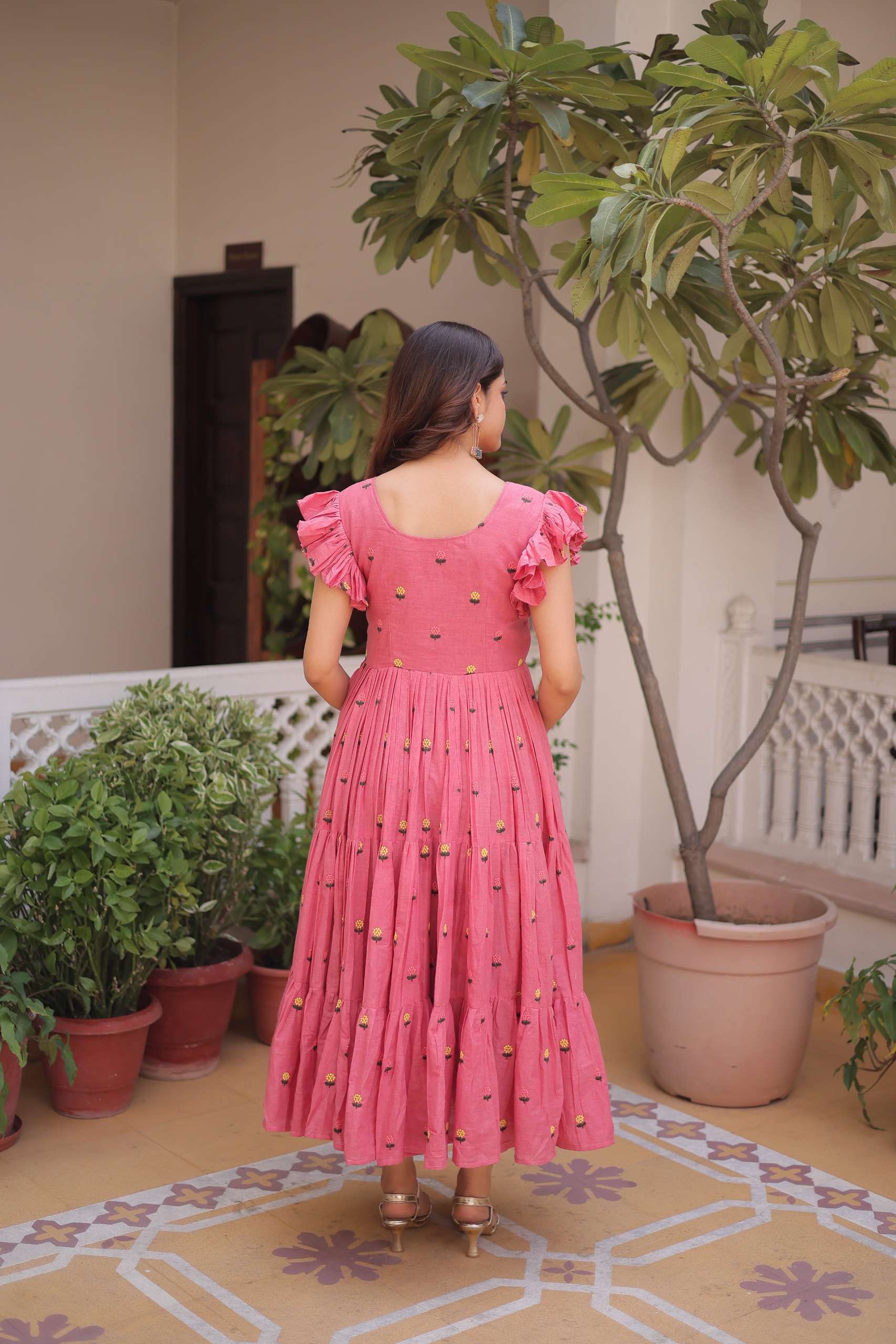 👉🏻 *KURTI :-* 👇🏻 👉🏻 *FABRICS & WORK :-* Cotton With Embroidered Work 👉🏻 *SIZE :-* M(38"), L(40"), XL(42"), XXL(44") 👉🏻 *LENGTH :-* 48 INCH 👉🏻 *SLEEVES:-* Sleeveless (Shoulder Frill Stitching) 👉🏻 *FLAIR :-* 6 MTR 👉🏻 *NECK TYPE :-* Fancy Round Neck 👉🏻 *STITCHING TYPE :-* Standard Stitching with Frill pattern