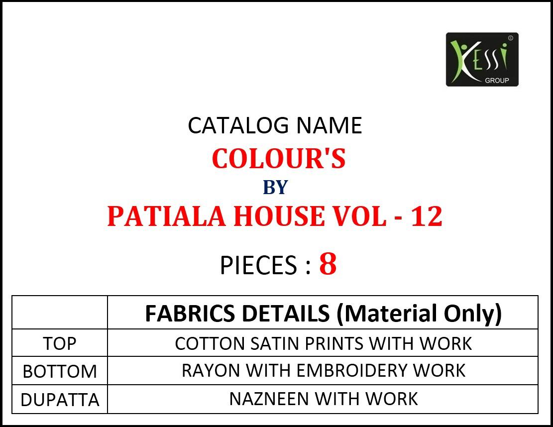 ? *Kessi Fabrics Pvt. Ltd.* has launched _Catalog name_ : *Colour's by Patiala House Vol - 12* ? _Fabric Details_ ? ?Top :- COTTON SATIN PRINTS WITH WORK ?Bottom:- RAYON WITH WORK ?Dupatta:- NAZNEEN WITH WORK ?Total Design :- 8 Rate- 799 per Pcs : Set to set . GST 5 Percent Extra. ?Dispatching 5 to 6 days later ?Booking started from now... ?Order yours soon.... |