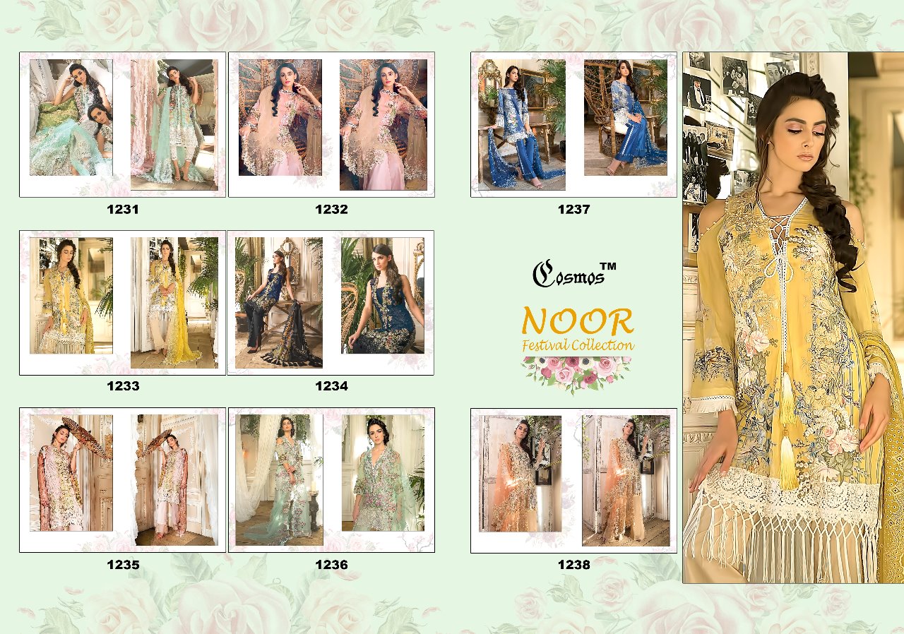 Buy Online Cosmos Noor Series 1231 To 1238 Cambric Cotton Printed With Embroidery Suits Catalog Wholesale Supplier And Dealer Surat 8 Pcs of Full Catalogue at Wholesale Price. Looking for Cosmos Noor Series 1231 To 1238 Cambric Cotton Printed With Embroidery Suits Catalog Wholesale Supplier And Dealer Surat Full Catalouge at Best Price? Buy Now Cosmos Noor Series 1231 To 1238 Cambric Cotton Printed With Embroidery Suits Catalog Wholesale Supplier And Dealer Surat at Wholesale Rate of Rs 7992 with Total 8 Pcs from authroized dealer and supplier of COSMOS Brand. Cost of Each piece is just only Rs 999 which is very low and affordable price to resale the product in your retail store ,This is Surat based Wholesale Supplier & Dealer of COSMOS Brand. Click on Brand name to Know more about COSMOS Brand's products.Call or Whatsapp on 9898838984 for booking or enquiry