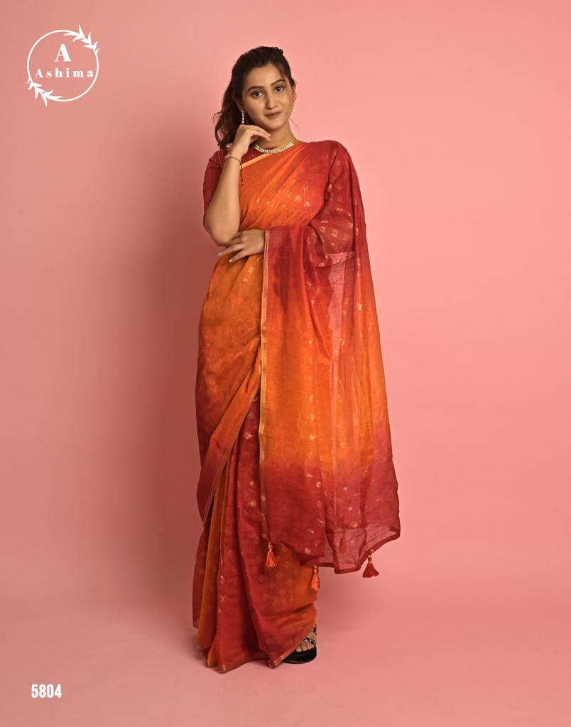 BRAND NAME - *ASHIMA* CATALOG NAME - *COTTON FOIL* SERIES - *5801 TO 5808* Single design 8 colour matching Total 8 pcs Fabric - Cotton jari border with spray & foil Blouse - soft weaving jari RATE - 650/- per pcs GST 5% EXTRA *SINGLE AVAIALABLE * ?? Delivery from tomorrow BOOK YOUR ORDER NOW 100+single |
