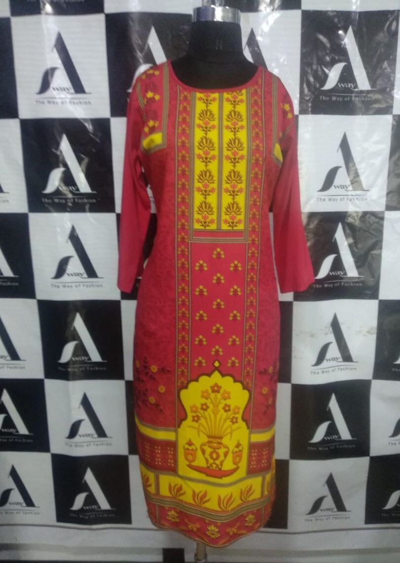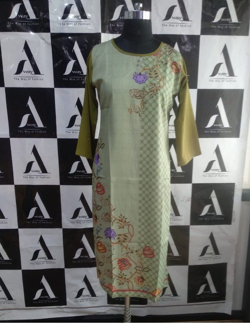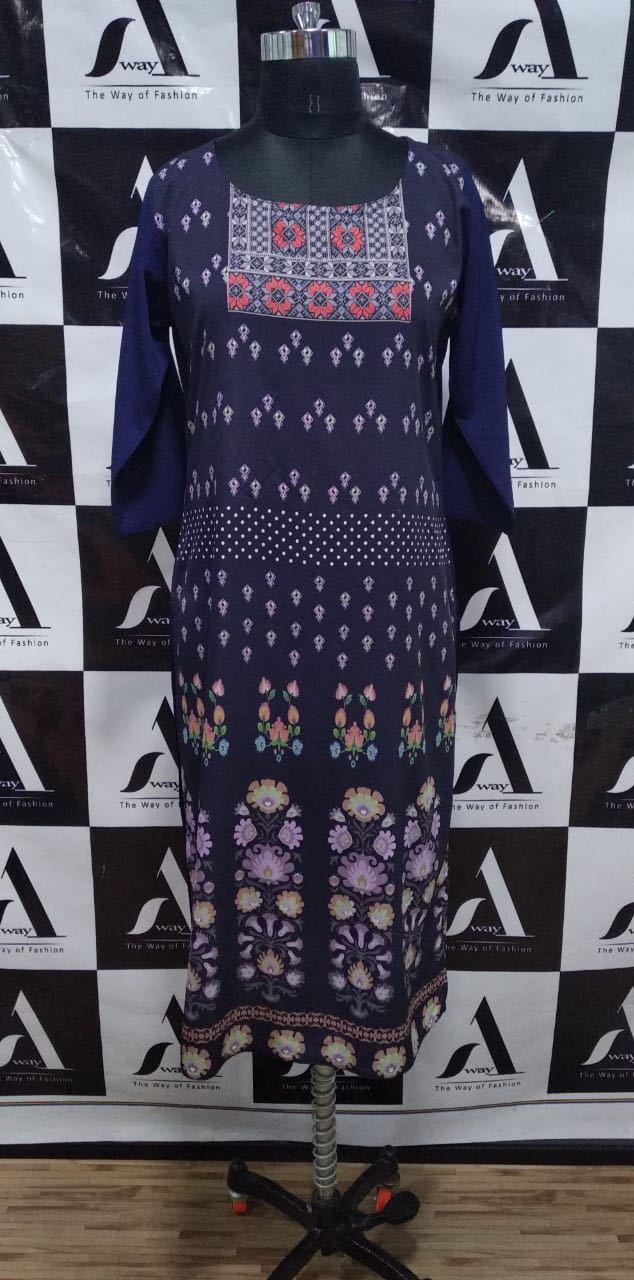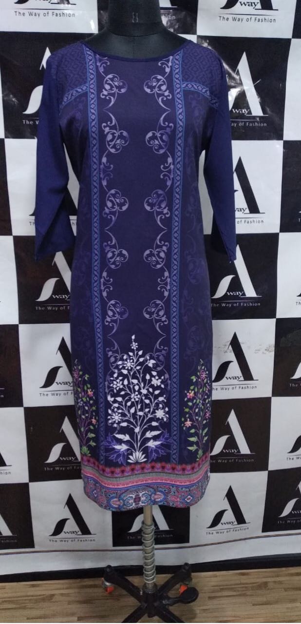 Rate 249+GST FABRIC CREPE LENGTH 44 Size 36 38 40 42 4 size in 1 design MOQ CREPE KURTIES WHOLESALER MANUFACTURES DEALERS NITYA NX SURAT GUJRAT |