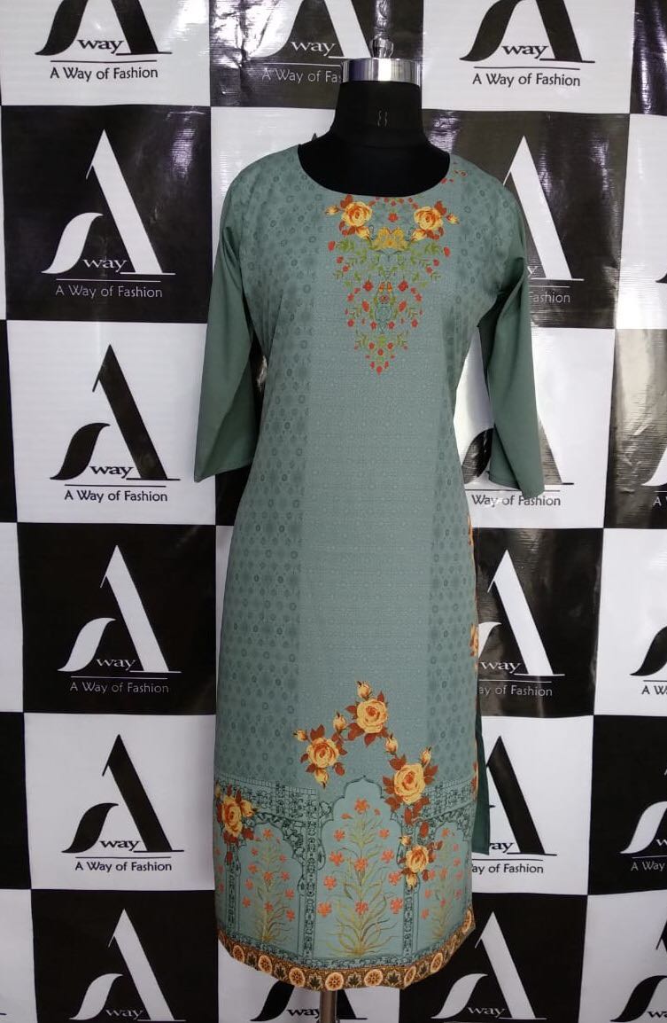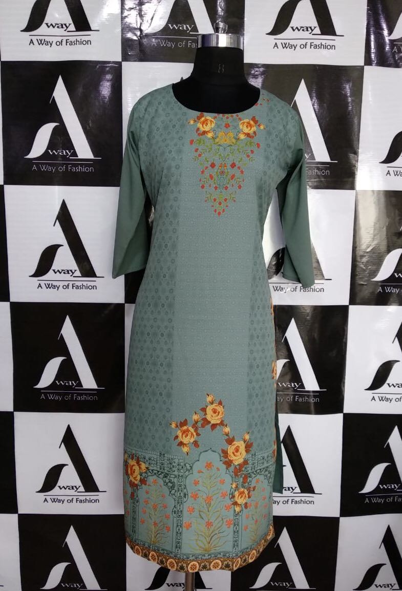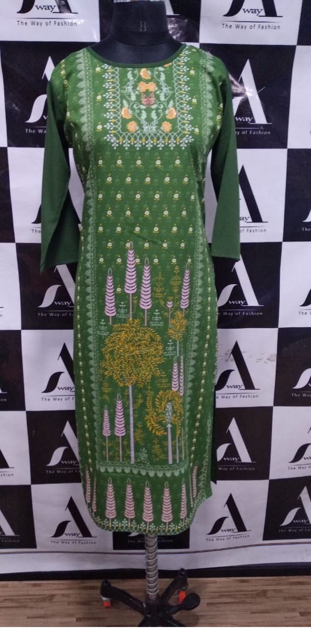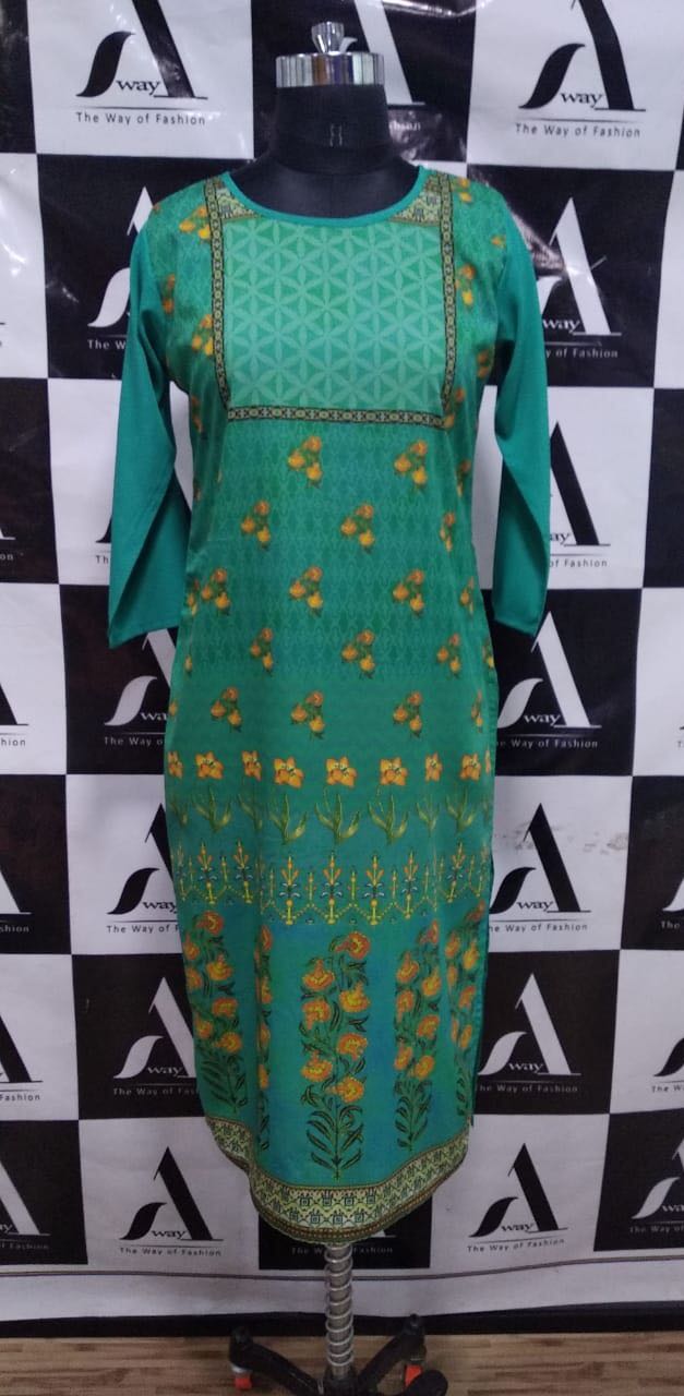 Rate 249+GST FABRIC CREPE LENGTH 44 Size 36 38 40 42 4 size in 1 design MOQ CREPE KURTIES WHOLESALER MANUFACTURES DEALERS NITYA NX SURAT GUJRAT |