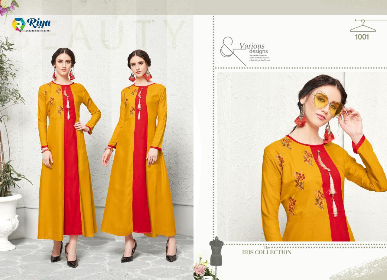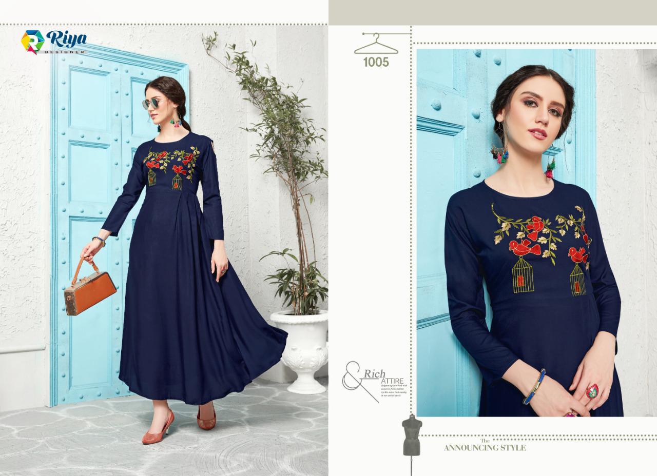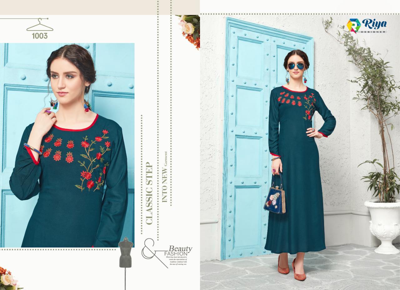 Jai Mata DI ? *Riya Designer* has launched _Catalog name_ : *CRYSTAL* ? _Fabric Details_ ? ?Top :- Heavy Reyon Dyed 14 Kg With Embrodairy Work ( With Full Flair) ?Total Design :- 06 ?Length - 52+ ?Rate:- Rs. 675 + Gst Set To Set. Delivery soon ?Size;- L-40,XL-42, XXL-44 |