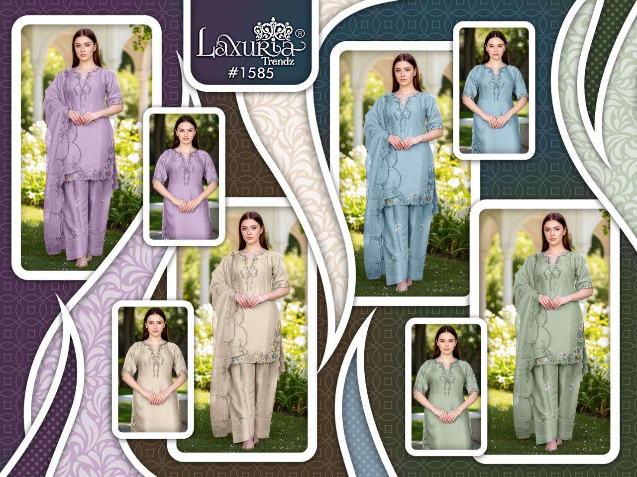 Buy Online D No 1585 by Laxuria Trendz kurti collection manufacturers surat 4 Pcs of Full Catalogue at Wholesale Price. Looking for D No 1585 by Laxuria Trendz kurti collection manufacturers surat Full Catalouge at Best Price? Buy Now D No 1585 by Laxuria Trendz kurti collection manufacturers surat at Wholesale Rate of Rs 6200 with Total 4 Pcs from authroized dealer and supplier of Laxuria Trandz Brand. Cost of Each piece is just only Rs 1550 which is very low and affordable price to resale the product in your retail store ,This is Surat based Wholesale Supplier & Dealer of Laxuria Trandz Brand. Click on Brand name to Know more about Laxuria Trandz Brand's products.Call or Whatsapp on 9898838984 for booking or enquiry