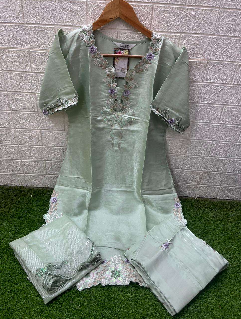 🔴 *Details* 🔴 〰〰〰〰〰〰〰 ✨ *Top*:- Roman Glass ✨ *Bottom* :- Roman Glass ✨ *Dupatta* :-Denting ✨ *Colour* :- 4 ✨ *Kurti Length* :-39