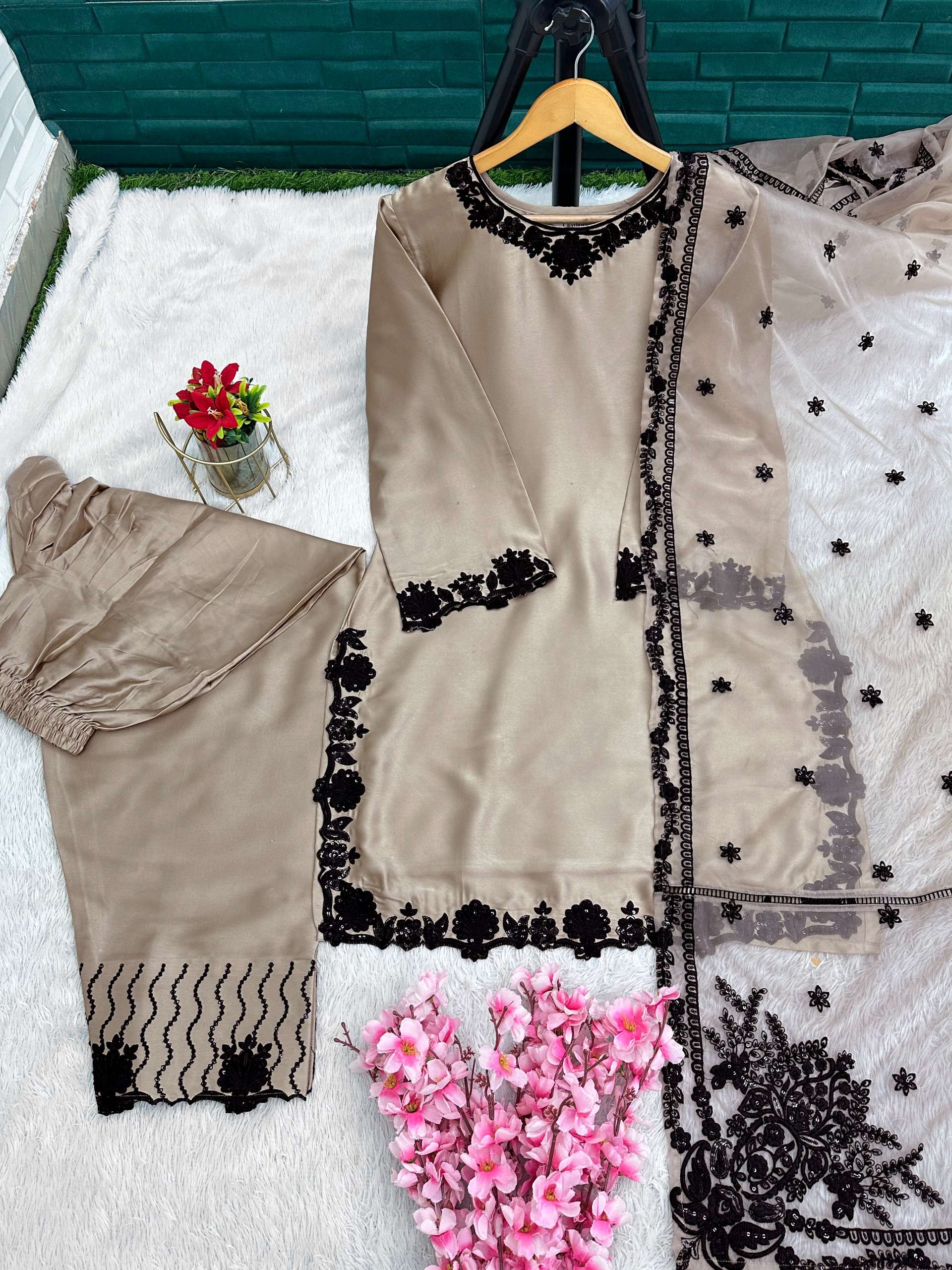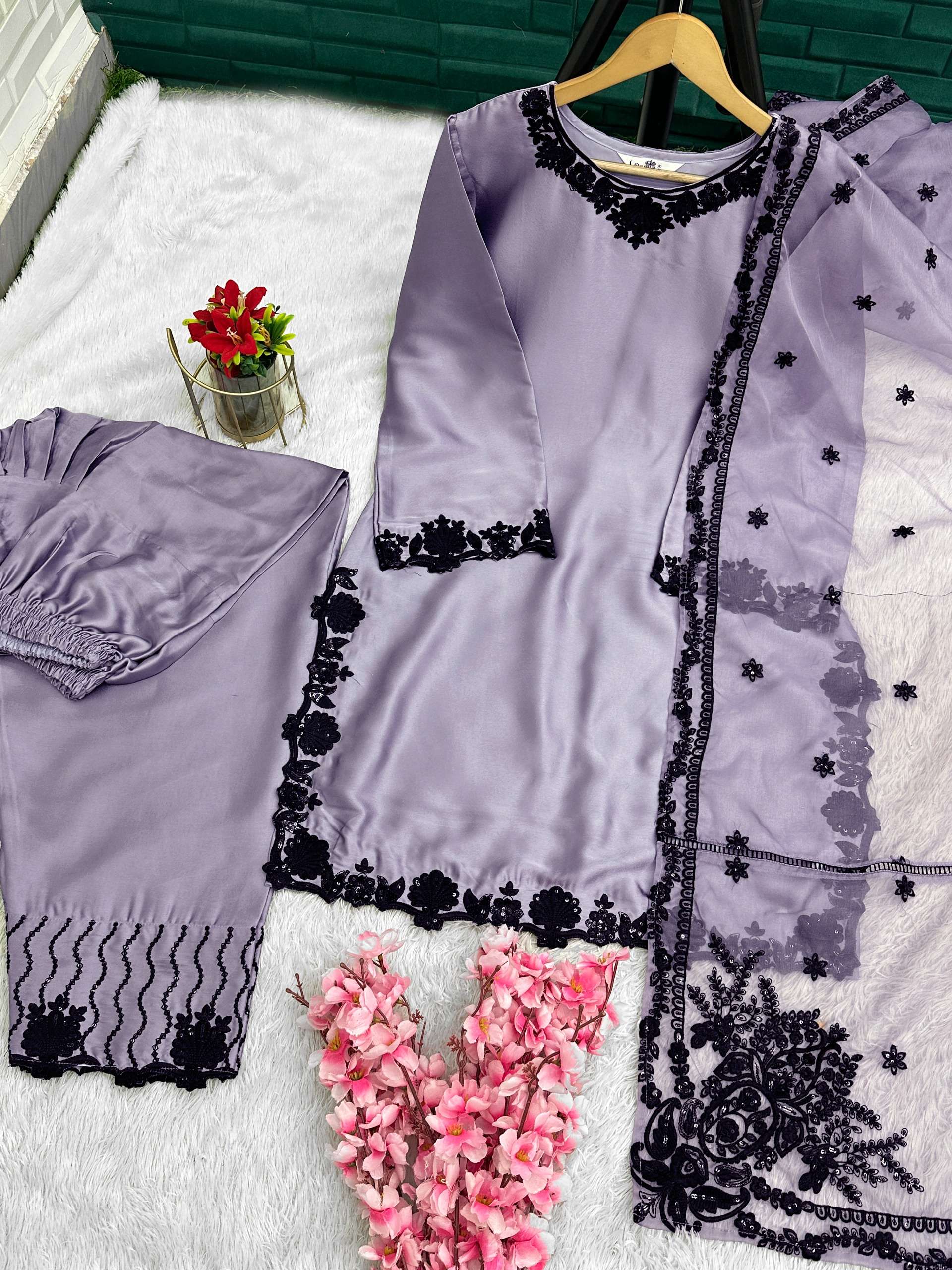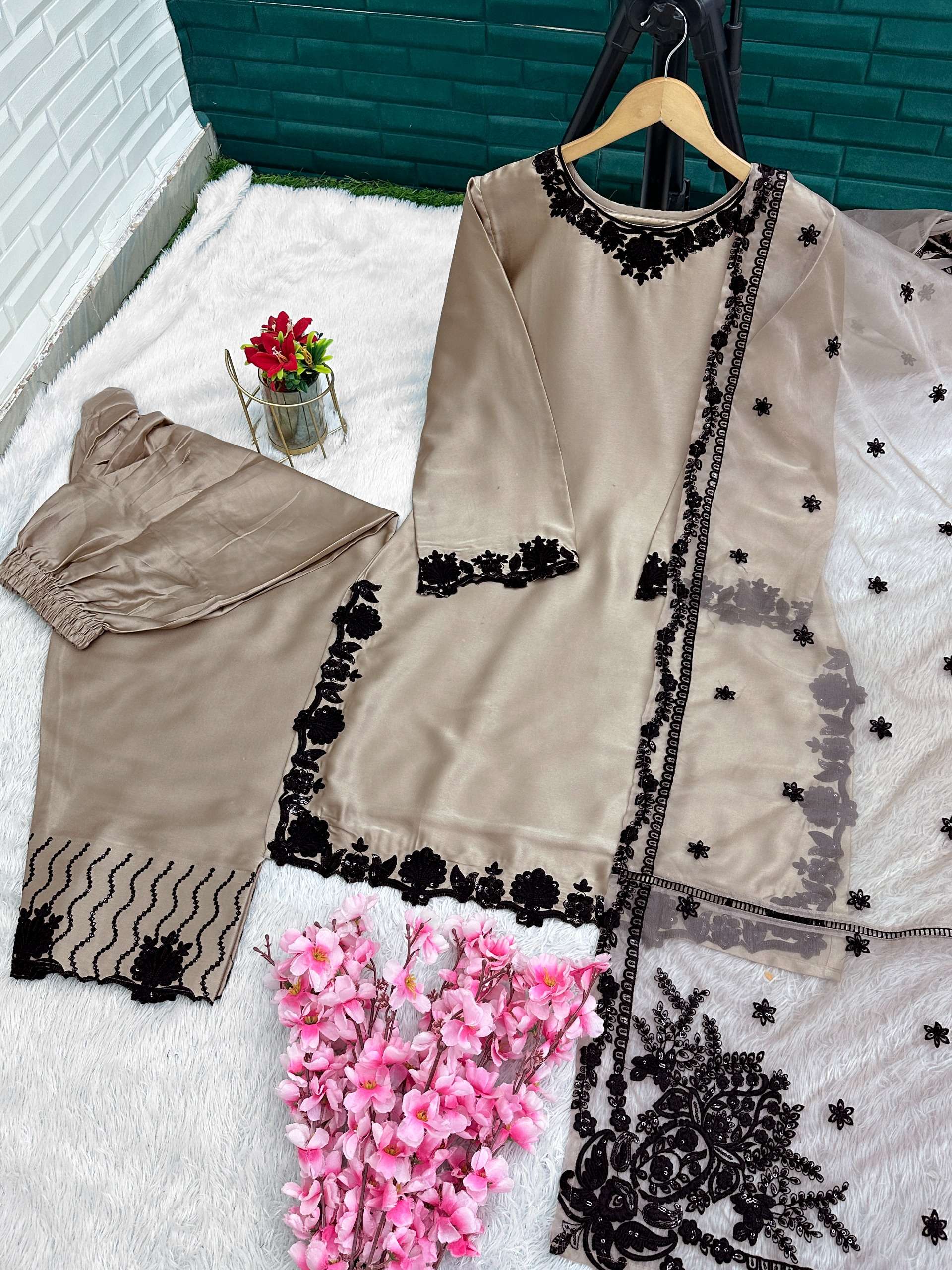 🔴 *Details* 🔴 〰〰〰〰〰〰〰 ✨ *Top*:- Satin ✨ *Bottom* :- Satin ✨ *Dupatta* :-Organza ✨ *Colour* :- 2 ✨ *Kurti Length* :- 37