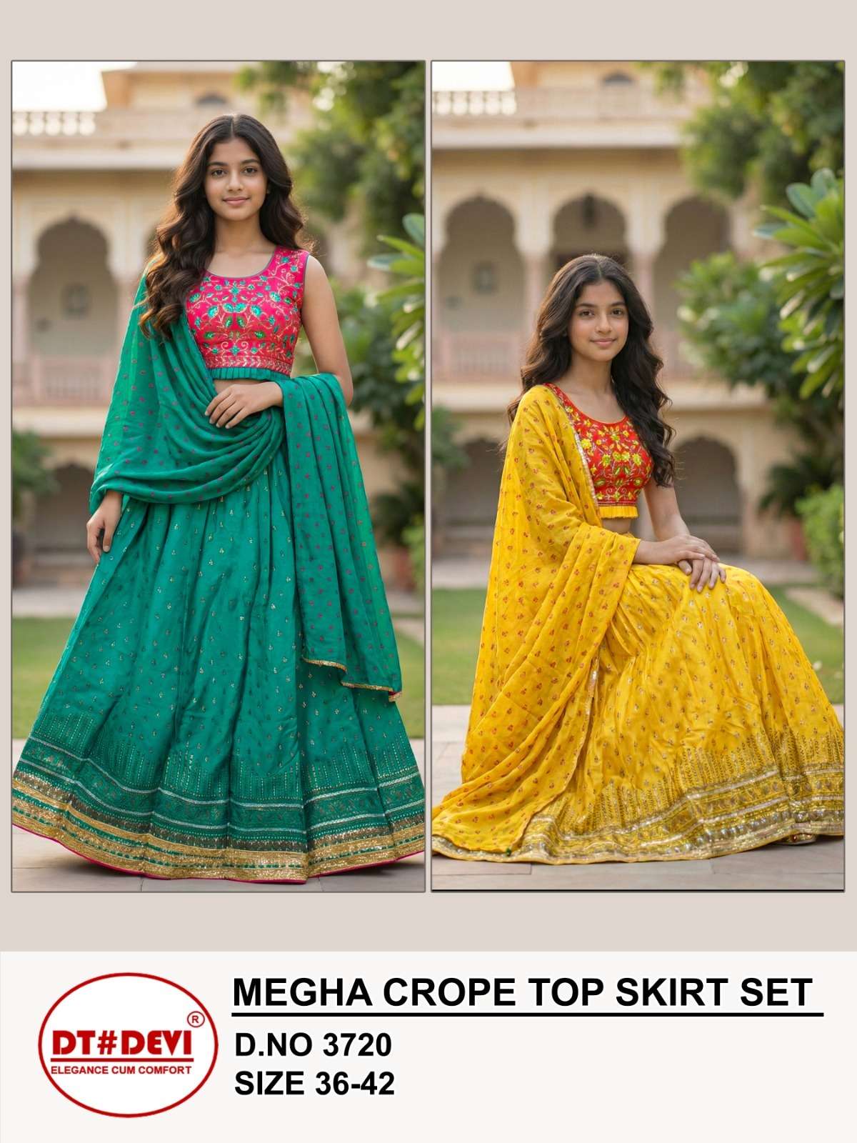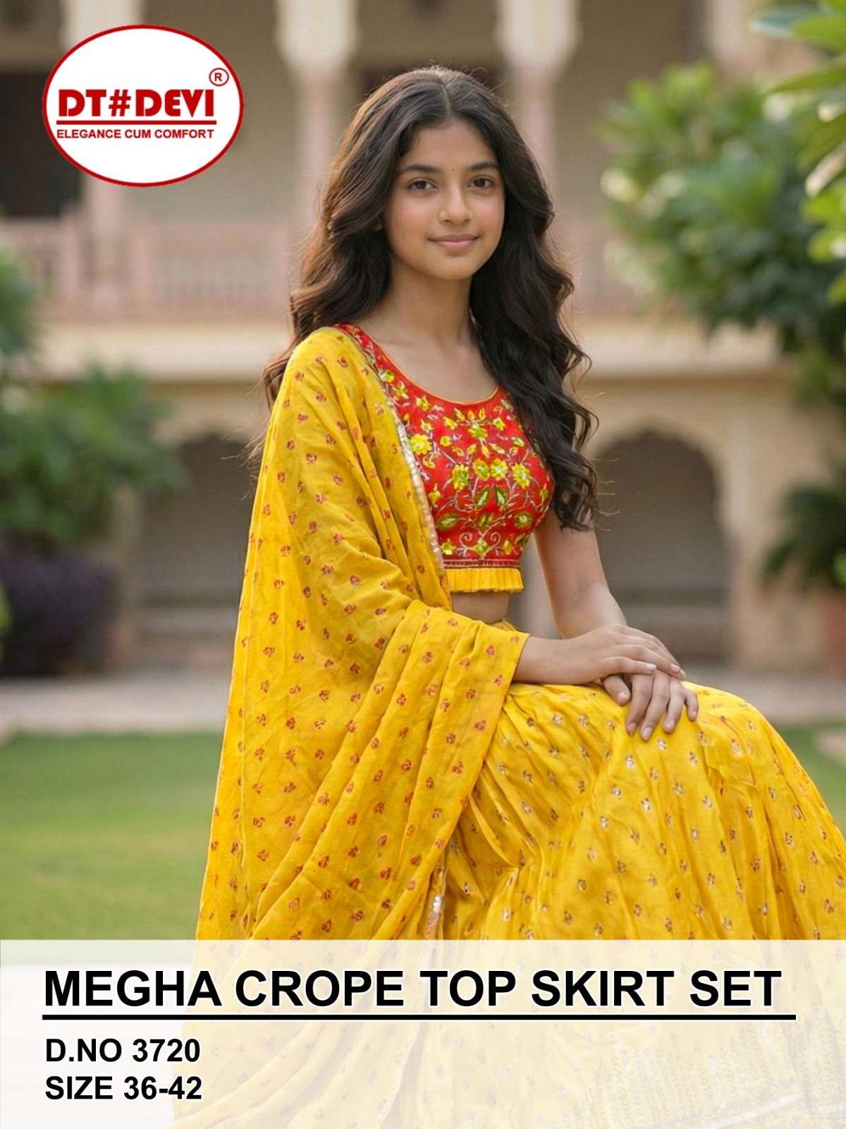 D NO 3720 MEGHA CROP TOP SKIRT SET WITH DUPATTA manufacturers surat