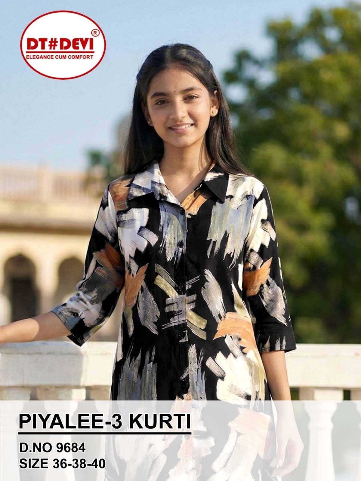 🔺 D.NO 9684 🔺PIYALEE-3 KURTI 🔺SIZE - 36-38-40 🔺COLOURS - 2 🔺1 SET - 6 PCS 🔺FABRIC TOP - 22KG RAYON PRINT 🔺RATE - 375/-