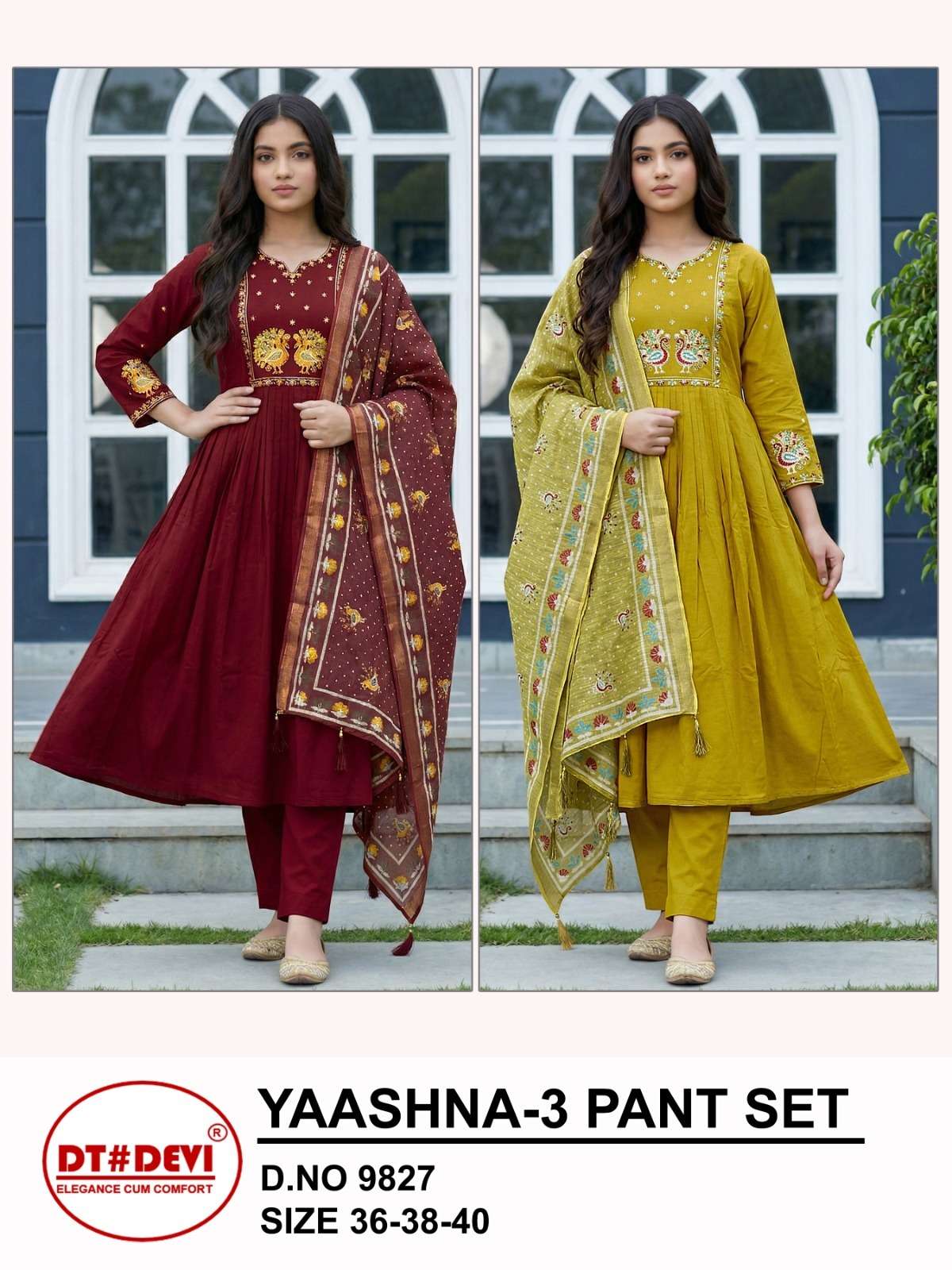 🍁 D.NO 9827 🍁YAASHNA-3 PANT SET 🍁SIZE - 36-38-40 🍁COLOURS - 2 🍁1 SET - 6 PCS 🍁FABRIC TOP & BOTTOM - DABBU COTTON 🍁WITH DIGITAL DUPATTA 🍁EMBROIDERY WORK IN SLEEVE 🍁RATE - 735/- 🍁SUMMER COLLECTION IN DABBU COTTON🍁 |