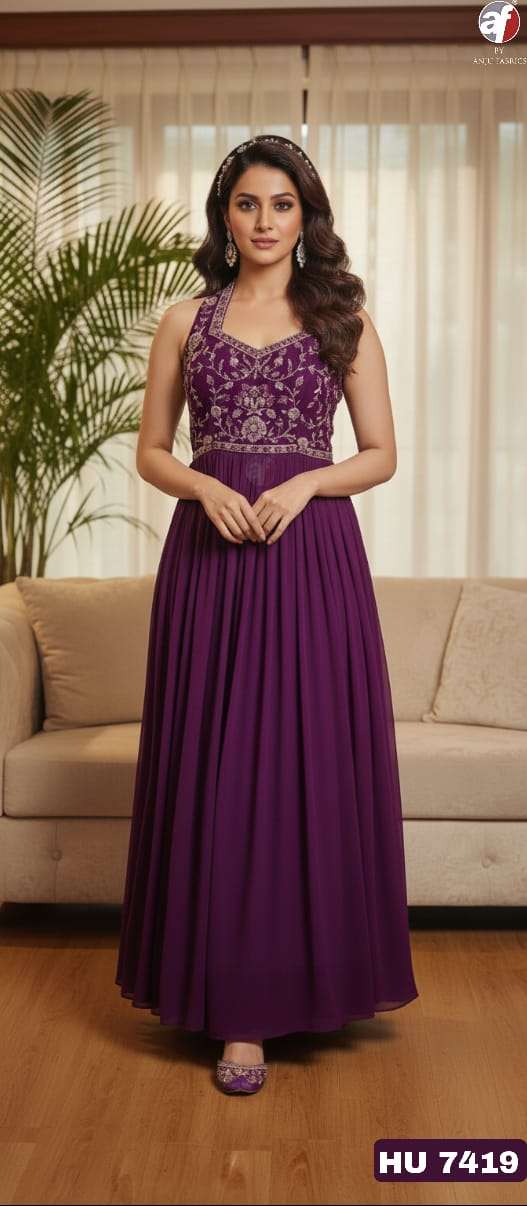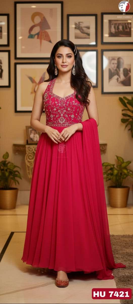 D NO HU 7419 by Anju fabric GOWN WITH DUPATTA collection manufacturers surat