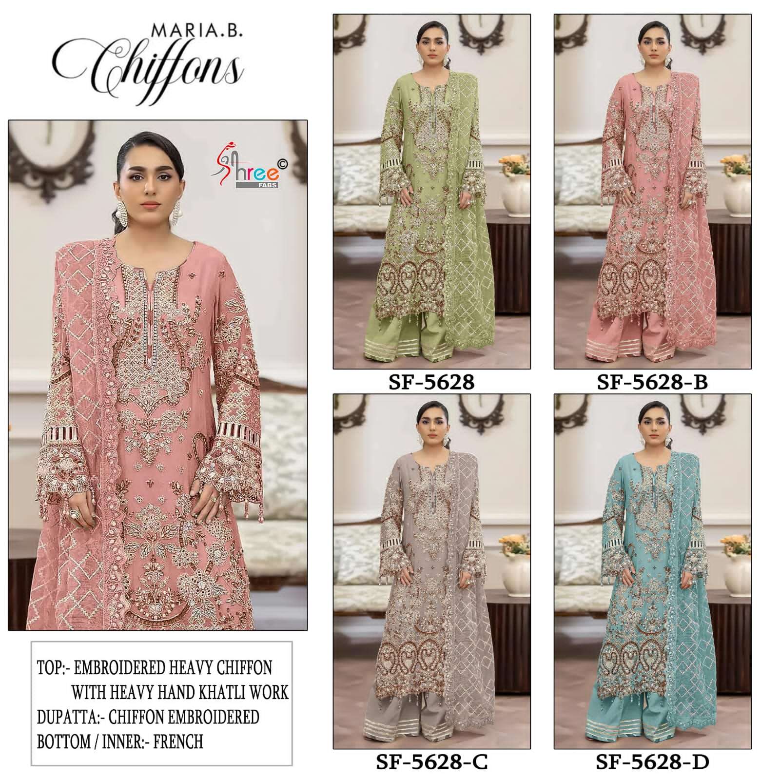 Buy Online D NO SF 5628 by SHREE FAB suit collection manufacturers surat 4 Pcs of Full Catalogue at Wholesale Price. Looking for D NO SF 5628 by SHREE FAB suit collection manufacturers surat Full Catalouge at Best Price? Buy Now D NO SF 5628 by SHREE FAB suit collection manufacturers surat at Wholesale Rate of Rs 5800 with Total 4 Pcs from authroized dealer and supplier of BRAND'S Brand. Cost of Each piece is just only Rs 1450 which is very low and affordable price to resale the product in your retail store ,This is Surat based Wholesale Supplier & Dealer of BRAND'S Brand. Click on Brand name to Know more about BRAND'S Brand's products.Call or Whatsapp on 9898838984 for booking or enquiry