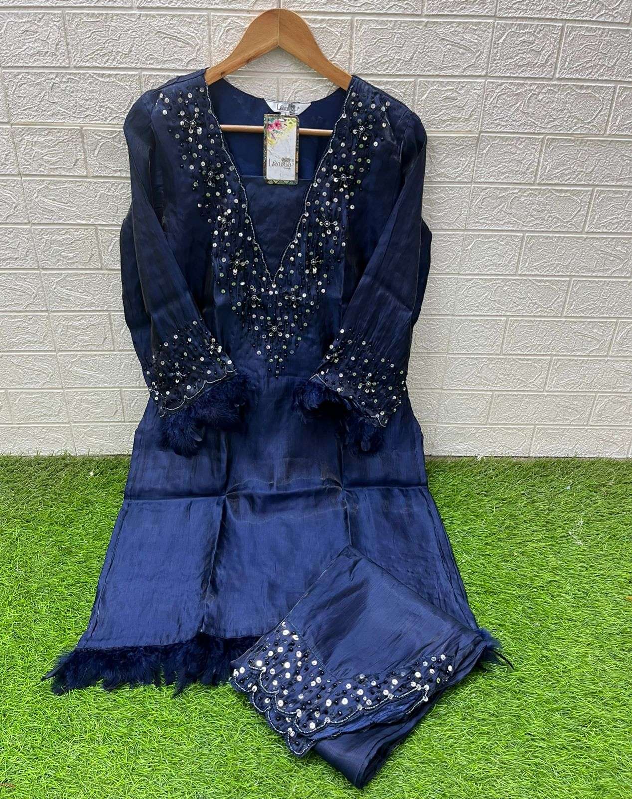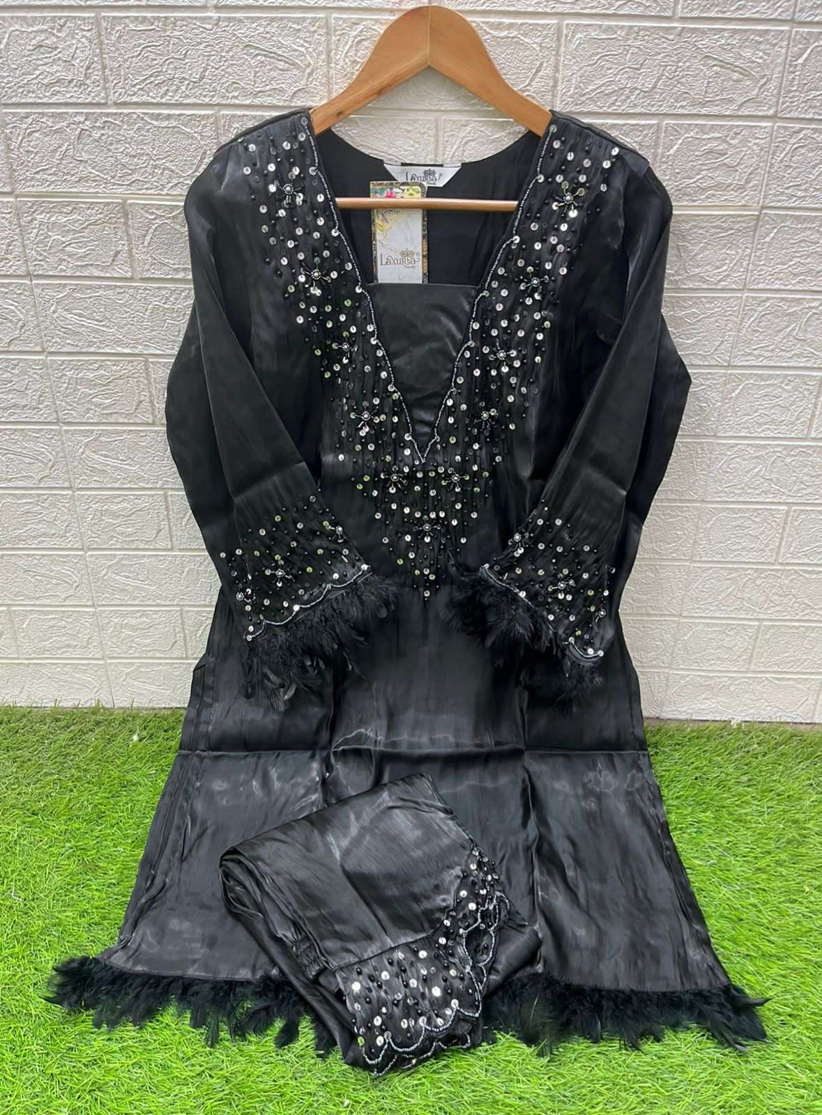 ➖➖➖➖➖➖➖➖ 💕💕*Description*💕💕 〰〰〰〰〰〰〰 *Designer stylish HandWork Tunic with Feather Glamours * HandWork sleevs* ...& *Stylist HandWork Pant*