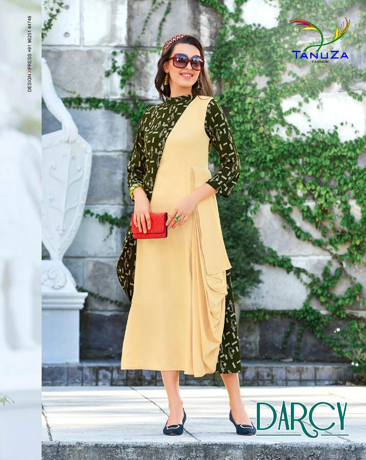 Buy Online Darcy By Tanuja Reyon Printed Kurtis Wholesale Supplier Gujarat 11 Pcs of Full Catalogue at Wholesale Price. Looking for Darcy By Tanuja Reyon Printed Kurtis Wholesale Supplier Gujarat Full Catalouge at Best Price? Buy Now Darcy By Tanuja Reyon Printed Kurtis Wholesale Supplier Gujarat at Wholesale Rate of Rs 7040 with Total 11 Pcs from authroized dealer and supplier of BRAND'S Brand. Cost of Each piece is just only Rs 640 which is very low and affordable price to resale the product in your retail store ,This is Surat based Wholesale Supplier & Dealer of BRAND'S Brand. Click on Brand name to Know more about BRAND'S Brand's products.Call or Whatsapp on 9898838984 for booking or enquiry