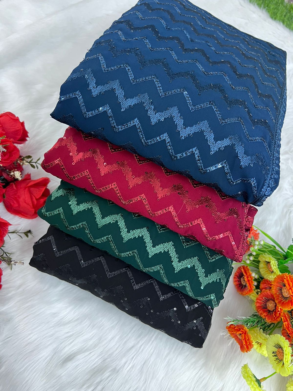 Design no.D-2009ABCD Fabric: Top: Georgette with embroidery& (semi stich ) Bottam:- Sentoon Dupatta : Nazmin with embroidery *Rate :1140/-* GST SHIP EXTRA *Special pouch packing* *_Quilted Fabric Used For best quality results_* 100+single |