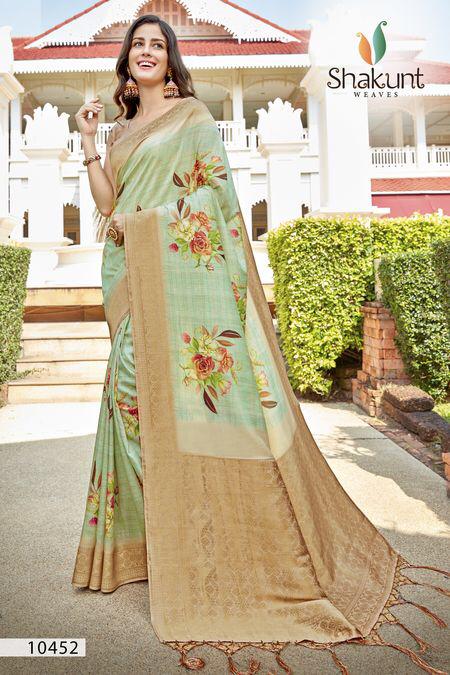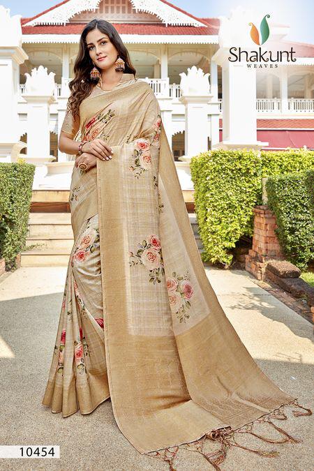 Brand - SHAKUNT. Catlog name - DELICATE Rate - 1791 per pcs Fabric- RICH SILK Weaving digital print Set to set . GST 5 Percent Extra. Delivery from today |