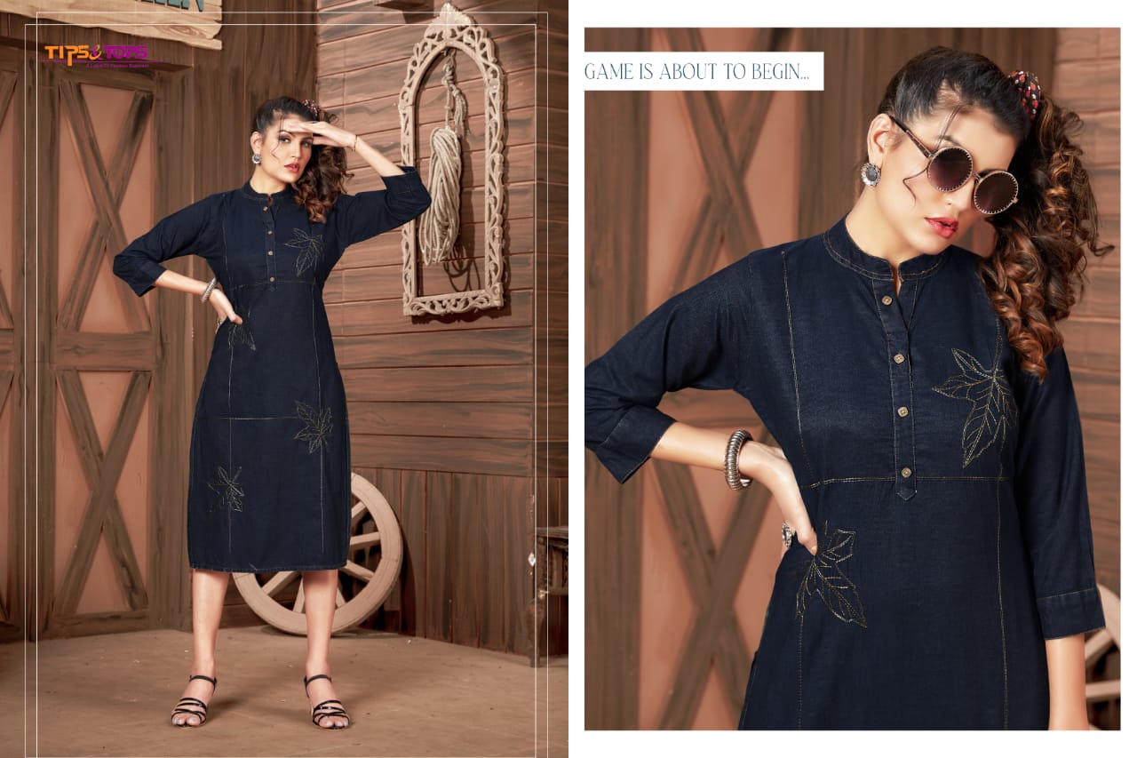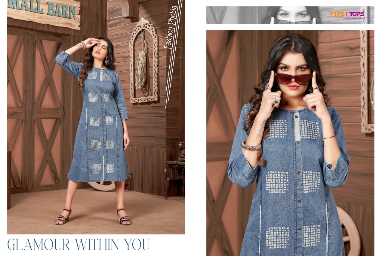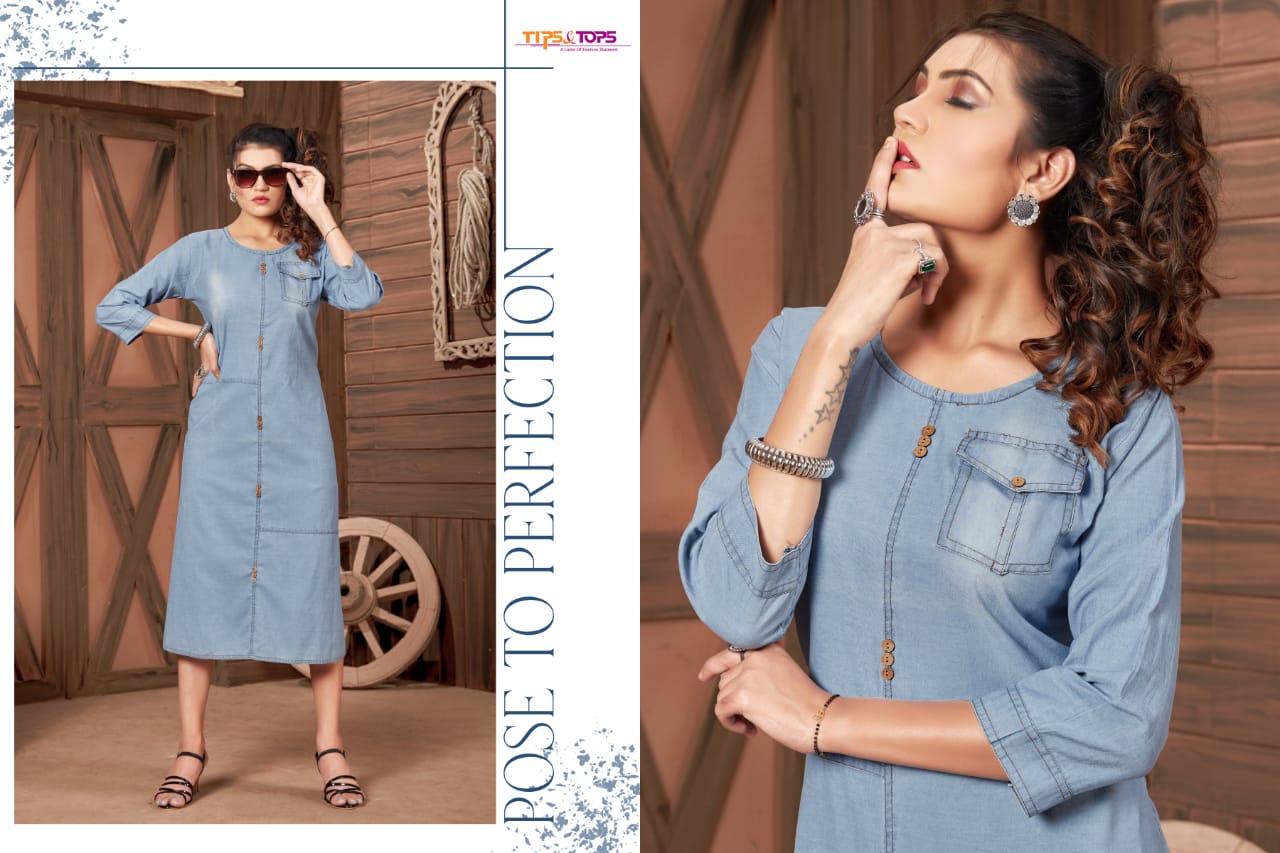Denimos By Tips And Tops Wholesale Denim Kurties Single Set
