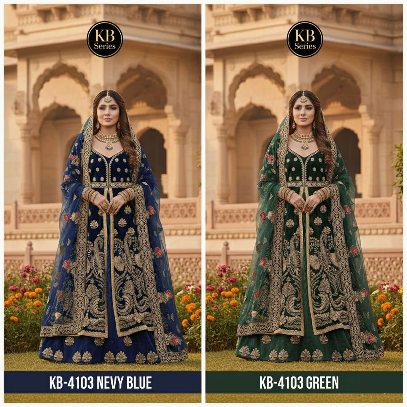 Design no KB 4103 by KB SERIES ANARKALI Lehenga collection manufacturers surat