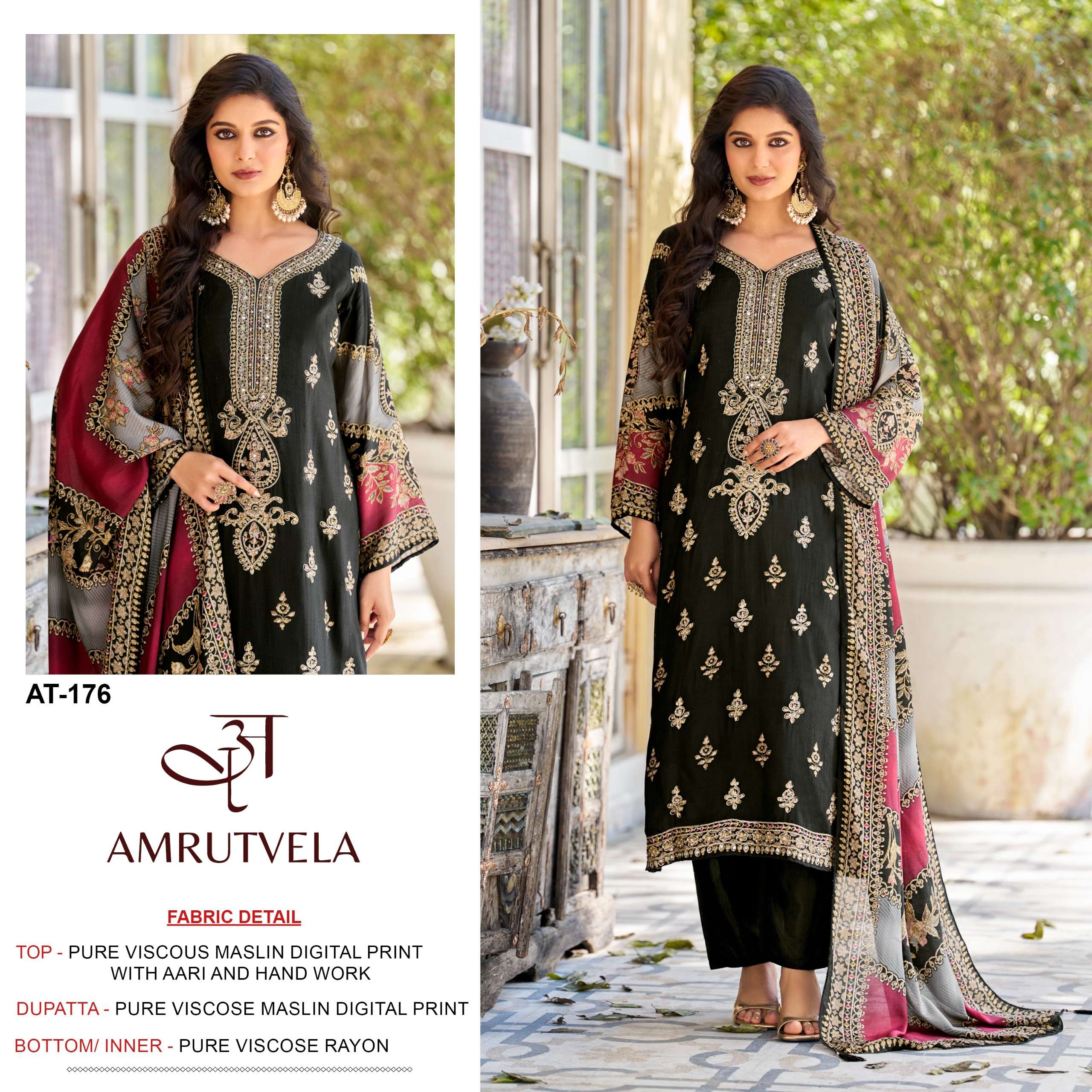Design number AT 176 by AMRUTVELA suit collection manufacturers surat