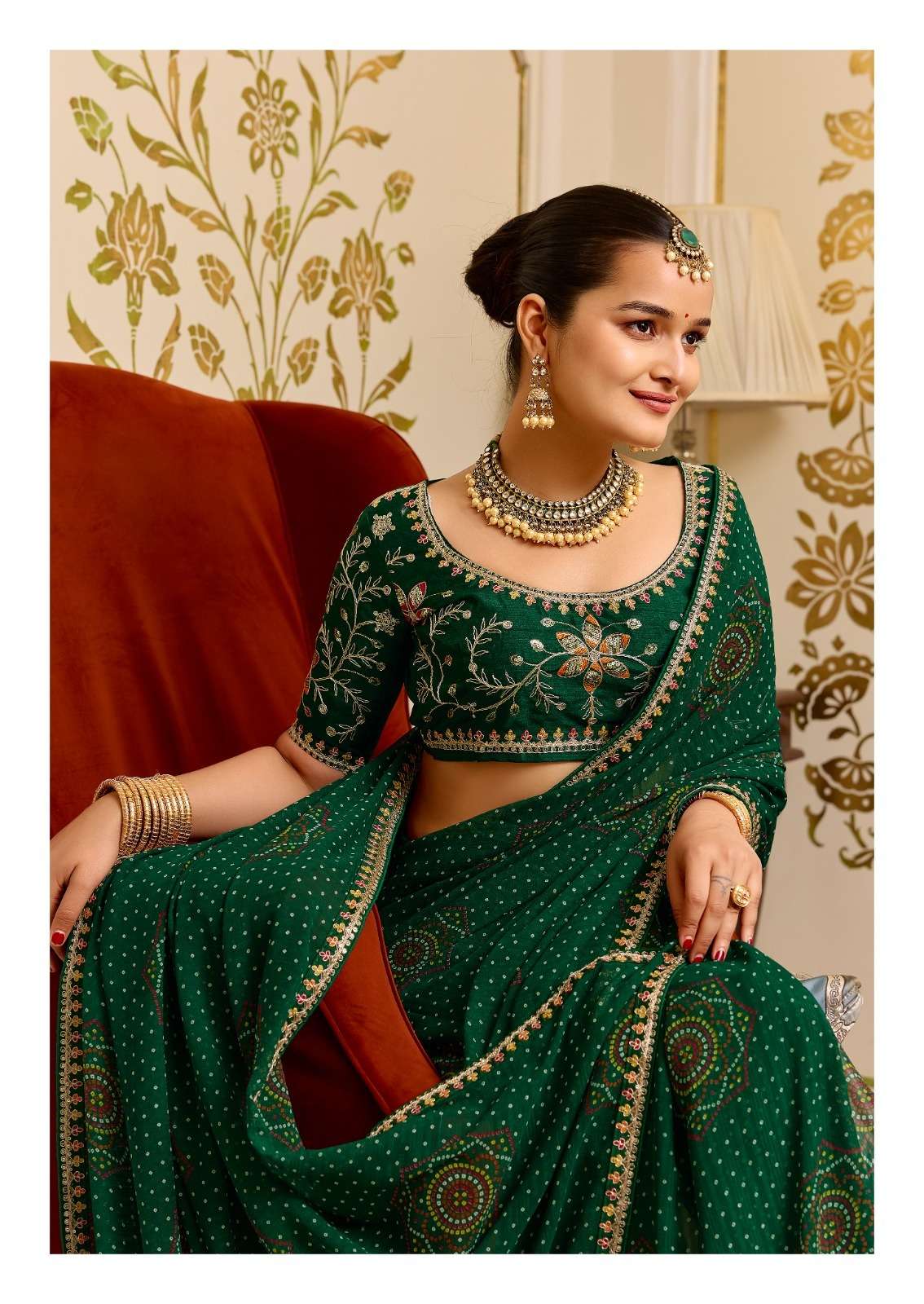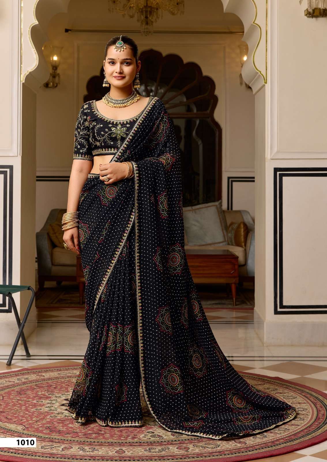 ➡️Catalog - *Devi vol-2* ➡️Rate - *750+5%* ➡️Fabric - *Georgette Fancy Pattern with Meena border & Embroidery blouse*