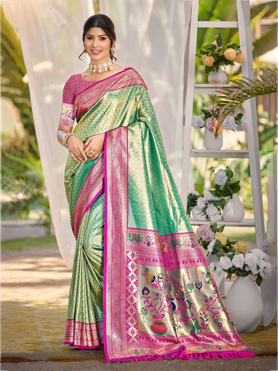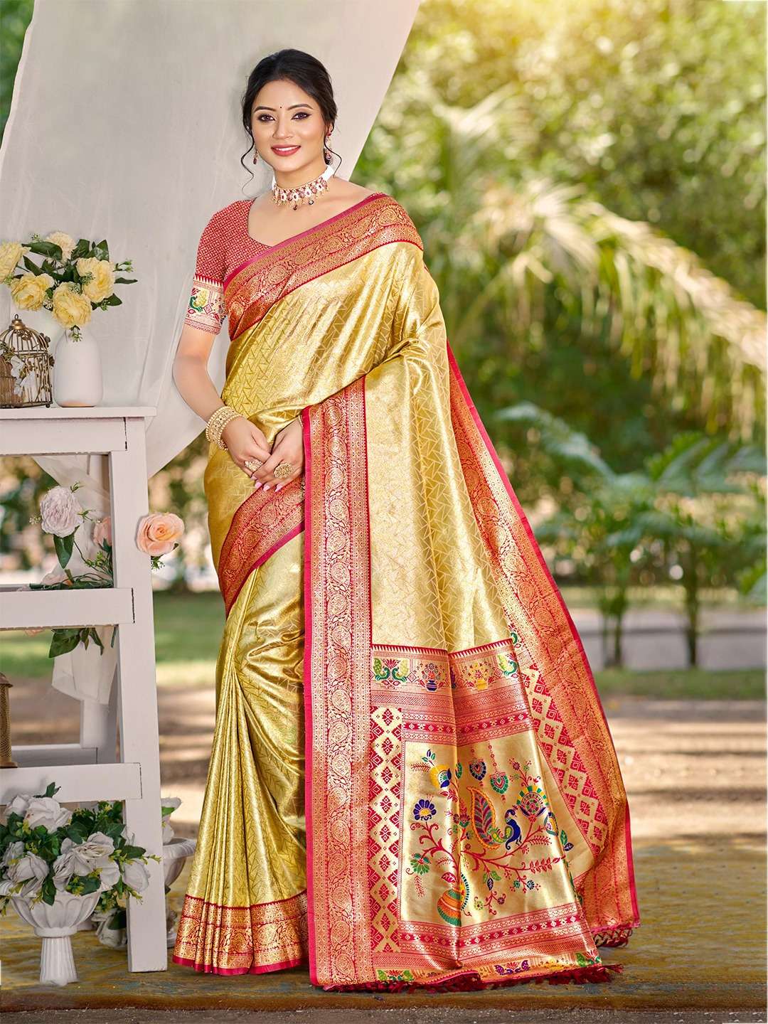 Brand - Bunawat DEVYANI SILK VOL-3 Saree Fabric : kanjivaram silk Blouse Fabric : kanjivaram silk Price : 1365 GST 5% Extra. Single avaialble. Ready to ship. |