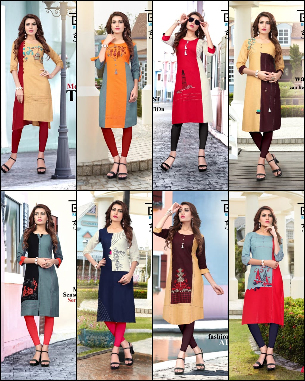 Buy Online Dhadak By Blue Hills 1001 Series Heavy Cotton Slub Kurti Catlog Wholesale Dealer And Supplier Surat 8 Pcs of Full Catalogue at Wholesale Price. Looking for Dhadak By Blue Hills 1001 Series Heavy Cotton Slub Kurti Catlog Wholesale Dealer And Supplier Surat Full Catalouge at Best Price? Buy Now Dhadak By Blue Hills 1001 Series Heavy Cotton Slub Kurti Catlog Wholesale Dealer And Supplier Surat at Wholesale Rate of Rs 2840 with Total 8 Pcs from authroized dealer and supplier of BRAND'S Brand. Cost of Each piece is just only Rs 355 which is very low and affordable price to resale the product in your retail store ,This is Surat based Wholesale Supplier & Dealer of BRAND'S Brand. Click on Brand name to Know more about BRAND'S Brand's products.Call or Whatsapp on 9898838984 for booking or enquiry