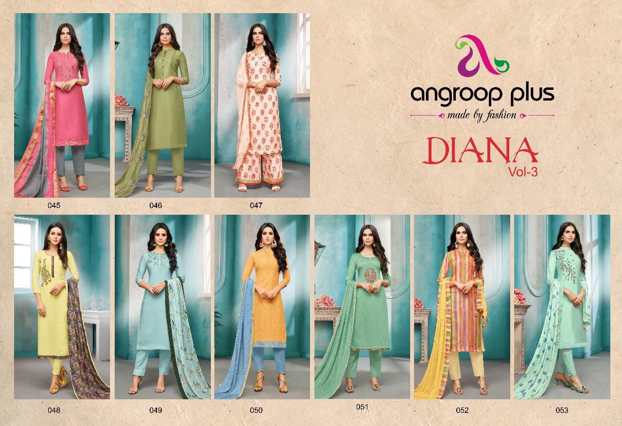 Diana Vol 3 By Angroop Plus 045 Series Fancy Masline Silk Salwar Kameez Catlog Wholesale Dealer Surat