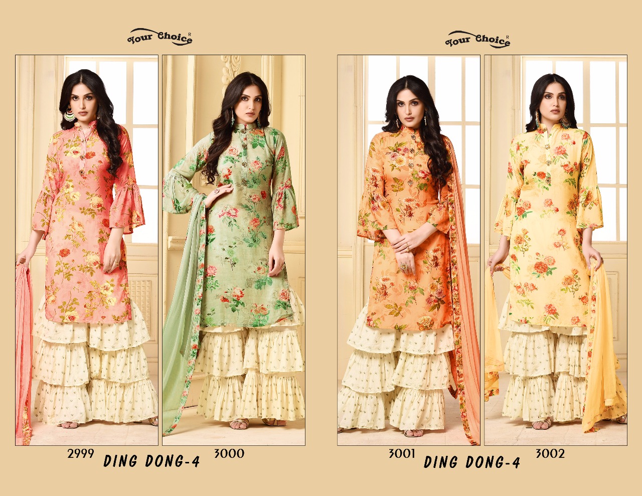 Buy Online Ding Dong Vol 3 By Your Choice 2999 Series Fancy Jam Silk Cotton Sarara Suit Catlog Wholesale Dealer Surat 4 Pcs of Full Catalogue at Wholesale Price. Looking for Ding Dong Vol 3 By Your Choice 2999 Series Fancy Jam Silk Cotton Sarara Suit Catlog Wholesale Dealer Surat Full Catalouge at Best Price? Buy Now Ding Dong Vol 3 By Your Choice 2999 Series Fancy Jam Silk Cotton Sarara Suit Catlog Wholesale Dealer Surat at Wholesale Rate of Rs 4780 with Total 4 Pcs from authroized dealer and supplier of YOUR CHOICE Brand. Cost of Each piece is just only Rs 1195 which is very low and affordable price to resale the product in your retail store ,This is Surat based Wholesale Supplier & Dealer of YOUR CHOICE Brand. Click on Brand name to Know more about YOUR CHOICE Brand's products.Call or Whatsapp on 9898838984 for booking or enquiry
