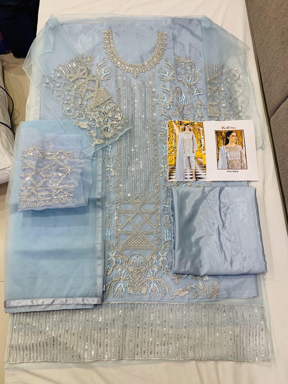 _Dear,_ _Sir/Madam,_? _*K|-|ayyira SuitsÂ??* has launching today heavy zari and sequence embroidered pakistani style semi stitched in butterfly net fabric salwar suit exclusive collection._ ???? *DN 1036 A-B*???? ??? _*Fabric Details :*_ ??? ? _Top : Butterfly heavy net embroidered zari and touchup of sequence work with daman fancy lace._ ? _Bottom : Dull santoon with heavy embroidered patch on tissue fabric_ ? _Dupatta : Butterfly heavy net._ ? _Single Design 2 Color_ ? _*Selling Price : 1199? + 5% GST*_ ? _Delivery Today ?? * set & loose & singel * Single extra 100 ? _*Booking start from today kindly confirm your order shortly*_ ? ? _*Thanks for your support.*_? |