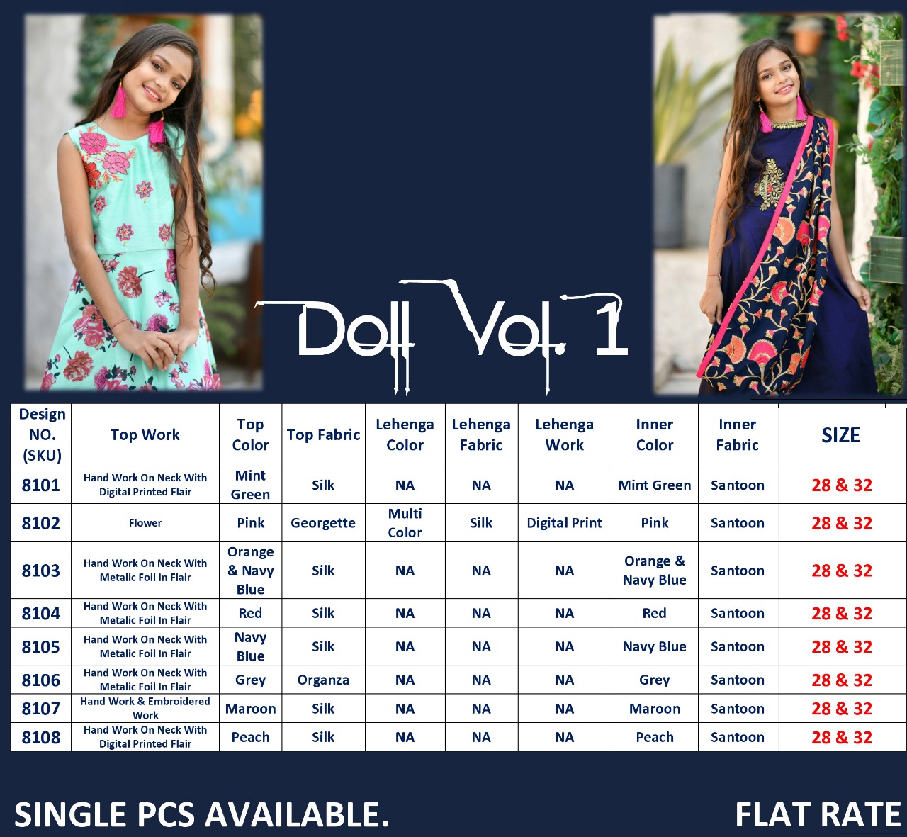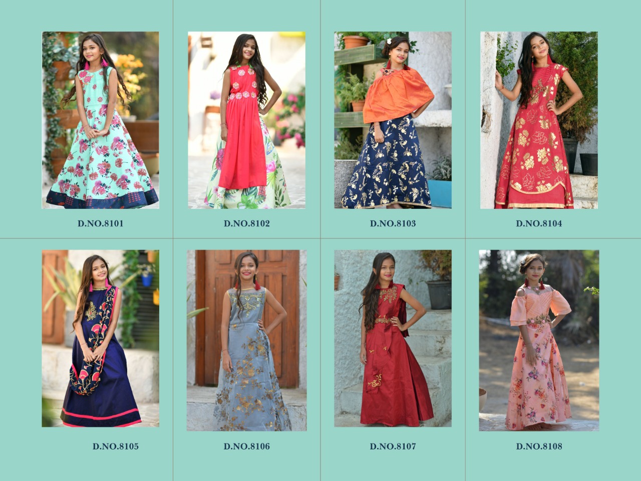 Buy Online Doll Vol 1 8101 Series Kids Wear Fancy Designer Gown Collection For Kids Wholesaler Surat 8 Pcs of Full Catalogue at Wholesale Price. Looking for Doll Vol 1 8101 Series Kids Wear Fancy Designer Gown Collection For Kids Wholesaler Surat Full Catalouge at Best Price? Buy Now Doll Vol 1 8101 Series Kids Wear Fancy Designer Gown Collection For Kids Wholesaler Surat at Wholesale Rate of Rs 10392 with Total 8 Pcs from authroized dealer and supplier of Brand. Cost of Each piece is just only Rs 1299 which is very low and affordable price to resale the product in your retail store ,This is Surat based Wholesale Supplier & Dealer of Brand. Click on Brand name to Know more about Brand's products.Call or Whatsapp on 9898838984 for booking or enquiry