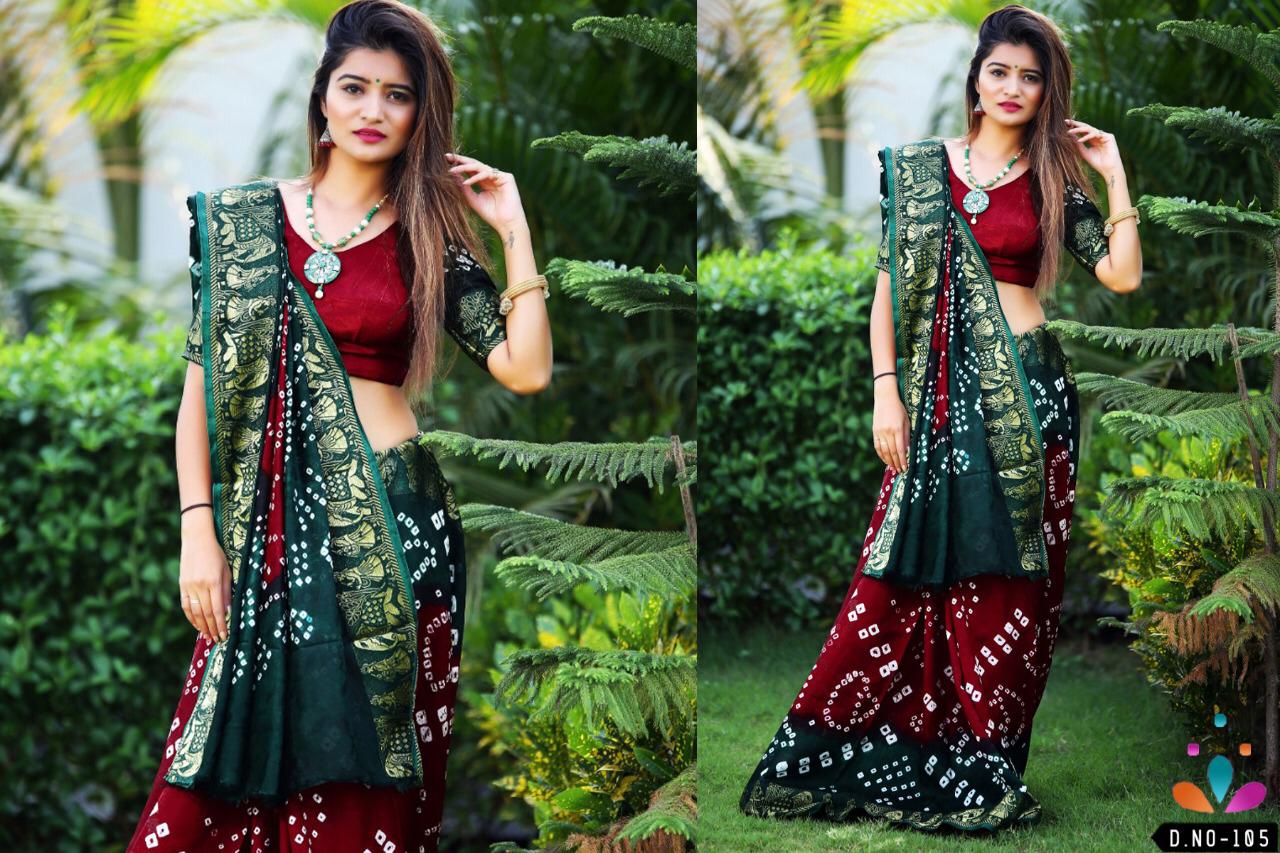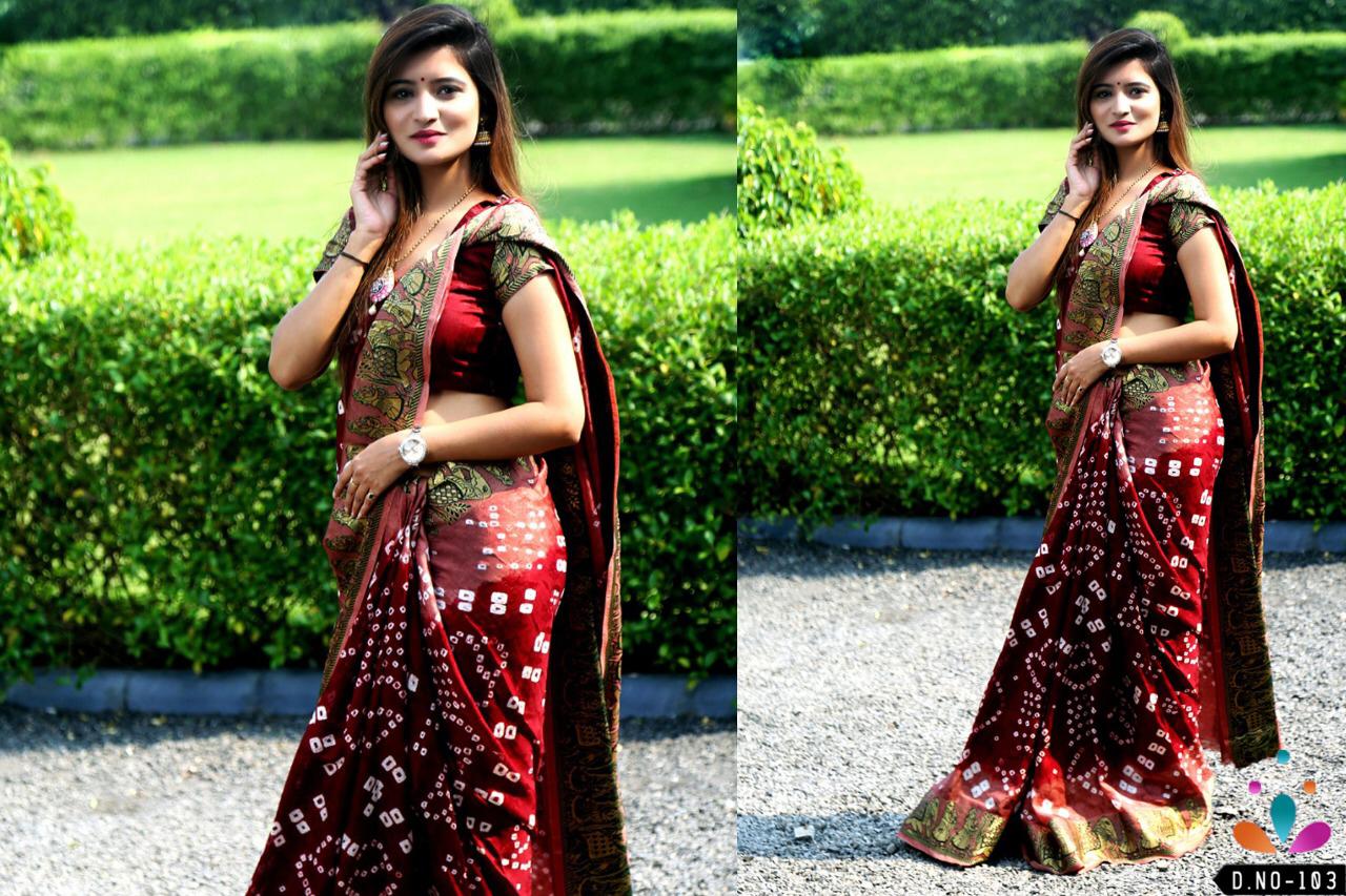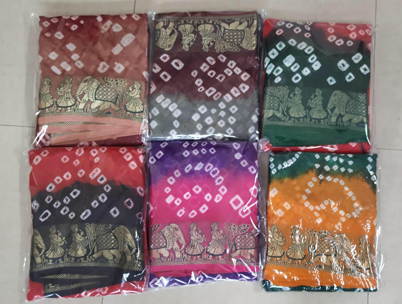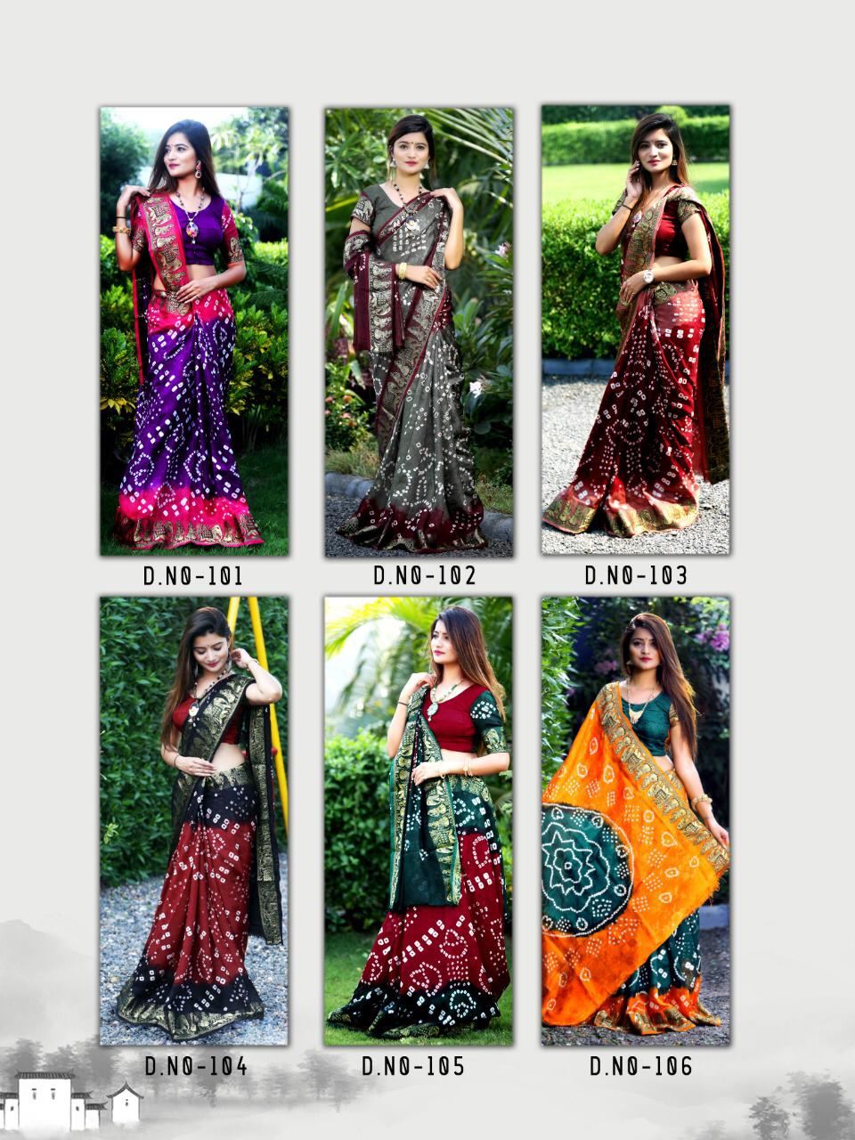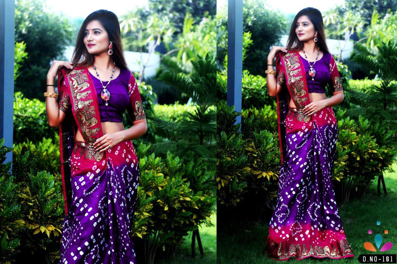 ??Dear Sir/MadamÂ? Thanks for your support.? ? *Fashion Dictionary New catlog present* ? catalog name-Dolly ? ??100% BEST QUALITY OR SAME PRODUCT Original Bandhej?? ?Details:- ? *Saree Fabric*: Art silk handicrafts Bandani ? *Blouse Fabric* : art silk *Length S/B* - 5.50 mtr + .80mtr ?Designs- 0?6?pcs *?RATE - 8?9?9??5?%GST?* Single 999 ? *AVAILABLE IN SINGLE* ??????hurryyy uppp....Book your order now...????????? |