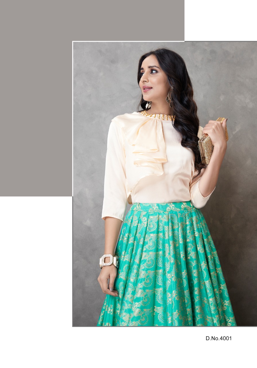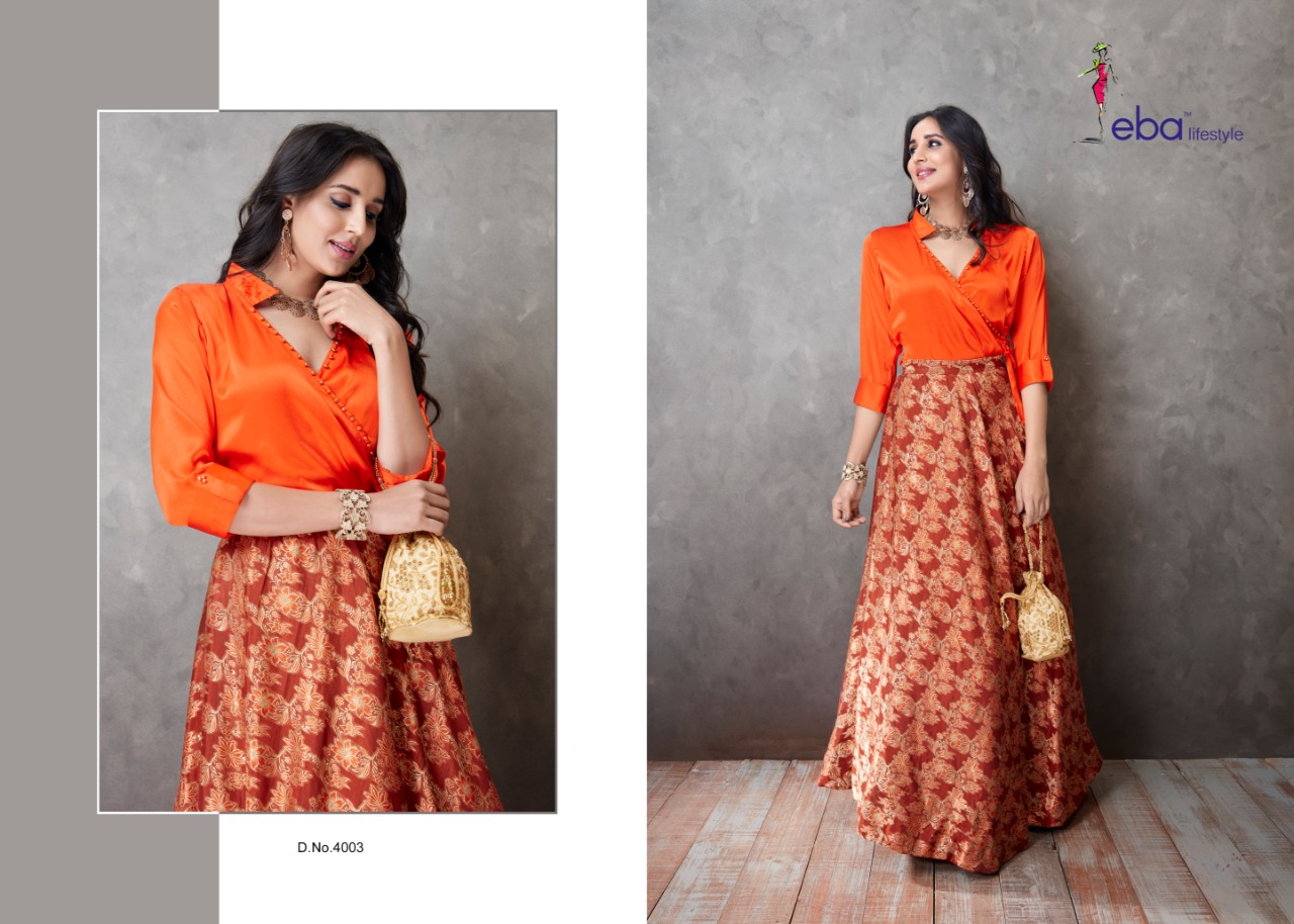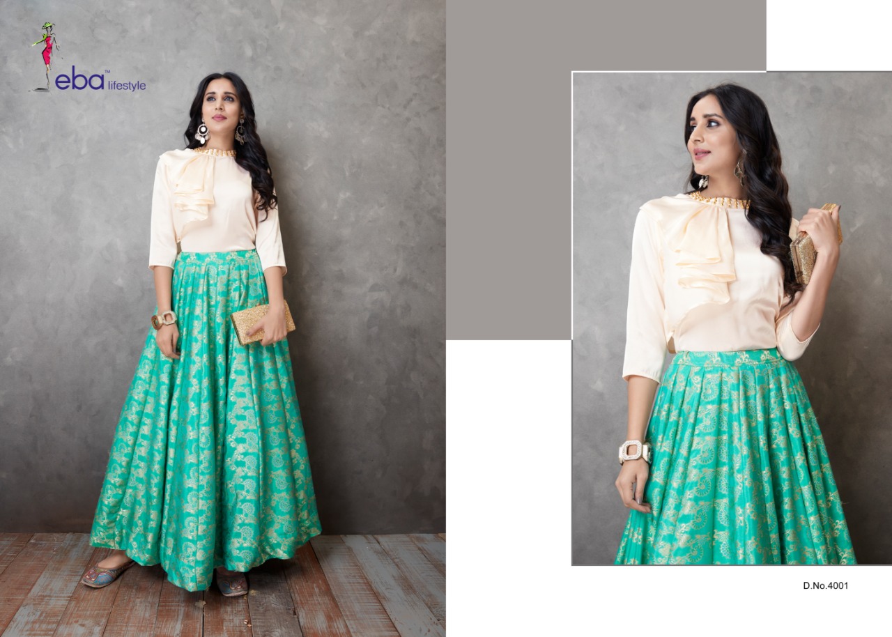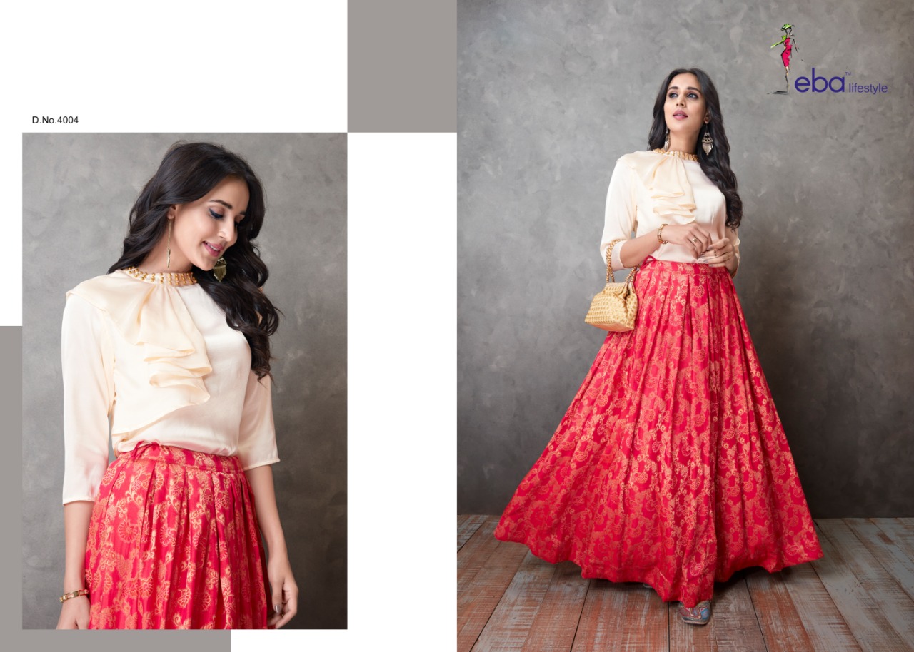 Eba Lifestyle Western Vol 1 Readymade Collection 4001 Series Designer Top And Skirt Collection Wholesaler And Supplier Surat