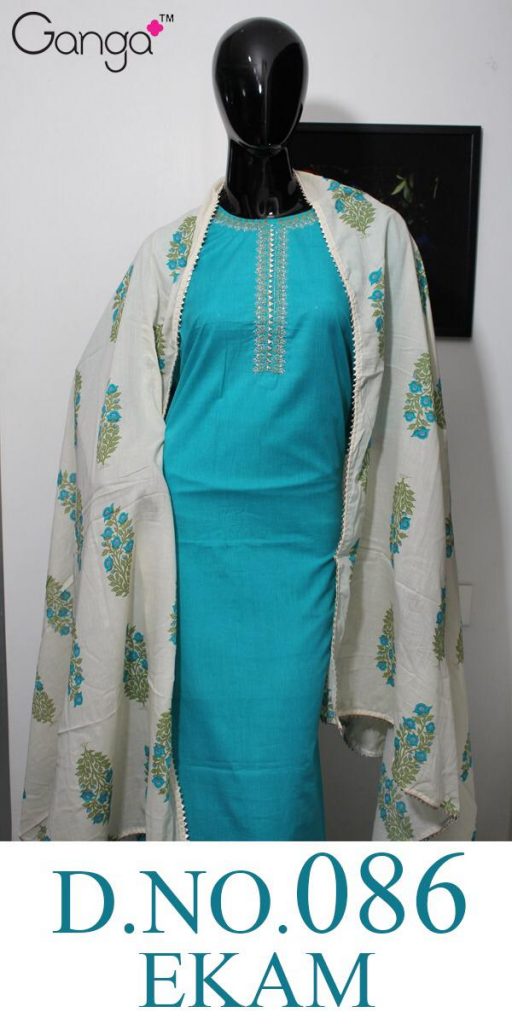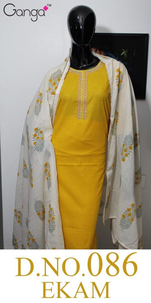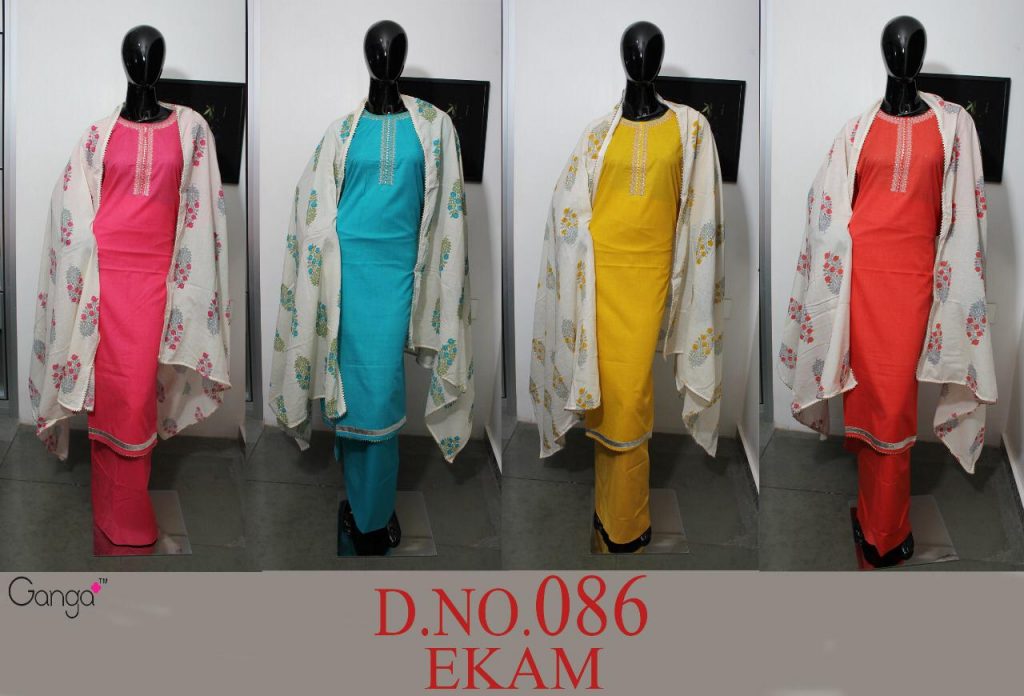 Buy Online Ekam 86 By Ganga Cotton Embroidered Suits Wholesale Supplier Gujarat 4 Pcs of Full Catalogue at Wholesale Price. Looking for Ekam 86 By Ganga Cotton Embroidered Suits Wholesale Supplier Gujarat Full Catalouge at Best Price? Buy Now Ekam 86 By Ganga Cotton Embroidered Suits Wholesale Supplier Gujarat at Wholesale Rate of Rs 4380 with Total 4 Pcs from authroized dealer and supplier of GANGA Brand. Cost of Each piece is just only Rs 1095 which is very low and affordable price to resale the product in your retail store ,This is Surat based Wholesale Supplier & Dealer of GANGA Brand. Click on Brand name to Know more about GANGA Brand's products.Call or Whatsapp on 9898838984 for booking or enquiry