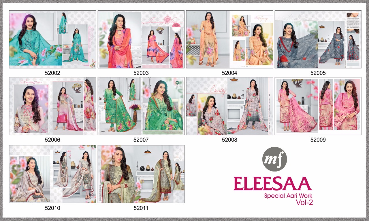 Buy Online Eleesaa Vol 2 Cambric Printed Suits Wholesale Supplier And Dealer India 10 Pcs of Full Catalogue at Wholesale Price. Looking for Eleesaa Vol 2 Cambric Printed Suits Wholesale Supplier And Dealer India Full Catalouge at Best Price? Buy Now Eleesaa Vol 2 Cambric Printed Suits Wholesale Supplier And Dealer India at Wholesale Rate of Rs 8550 with Total 10 Pcs from authroized dealer and supplier of BRAND'S Brand. Cost of Each piece is just only Rs 855 which is very low and affordable price to resale the product in your retail store ,This is Surat based Wholesale Supplier & Dealer of BRAND'S Brand. Click on Brand name to Know more about BRAND'S Brand's products.Call or Whatsapp on 9898838984 for booking or enquiry