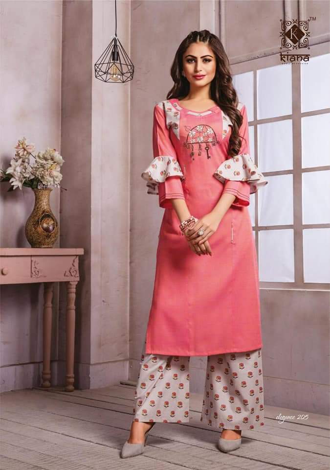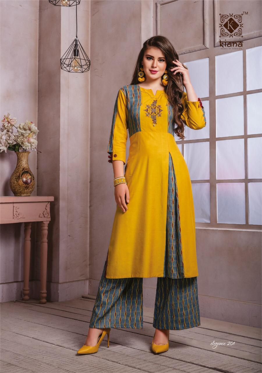 Buy Online Elegance Vol 2 By Kiana House Of Fashion Reyon Kurtis With Plazzo Wholesale Supplier Surat 10 Pcs of Full Catalogue at Wholesale Price. Looking for Elegance Vol 2 By Kiana House Of Fashion Reyon Kurtis With Plazzo Wholesale Supplier Surat Full Catalouge at Best Price? Buy Now Elegance Vol 2 By Kiana House Of Fashion Reyon Kurtis With Plazzo Wholesale Supplier Surat at Wholesale Rate of Rs 7000 with Total 10 Pcs from authroized dealer and supplier of KIANAA FASHION Brand. Cost of Each piece is just only Rs 700 which is very low and affordable price to resale the product in your retail store ,This is Surat based Wholesale Supplier & Dealer of KIANAA FASHION Brand. Click on Brand name to Know more about KIANAA FASHION Brand's products.Call or Whatsapp on 9898838984 for booking or enquiry