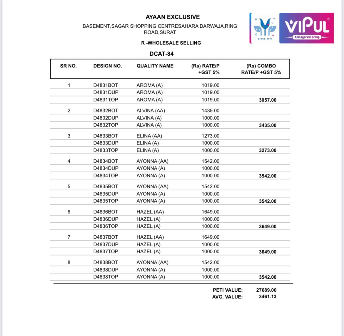 Buy Online Elegance Vol 2 By Vipul Designer Suits Wholesale Suppliers And Dealer From India 8 Pcs of Full Catalogue at Wholesale Price. Looking for Elegance Vol 2 By Vipul Designer Suits Wholesale Suppliers And Dealer From India Full Catalouge at Best Price? Buy Now Elegance Vol 2 By Vipul Designer Suits Wholesale Suppliers And Dealer From India at Wholesale Rate of Rs 27688 with Total 8 Pcs from authroized dealer and supplier of VIPUL Brand. Cost of Each piece is just only Rs 3461 which is very low and affordable price to resale the product in your retail store ,This is Surat based Wholesale Supplier & Dealer of VIPUL Brand. Click on Brand name to Know more about VIPUL Brand's products.Call or Whatsapp on 9898838984 for booking or enquiry