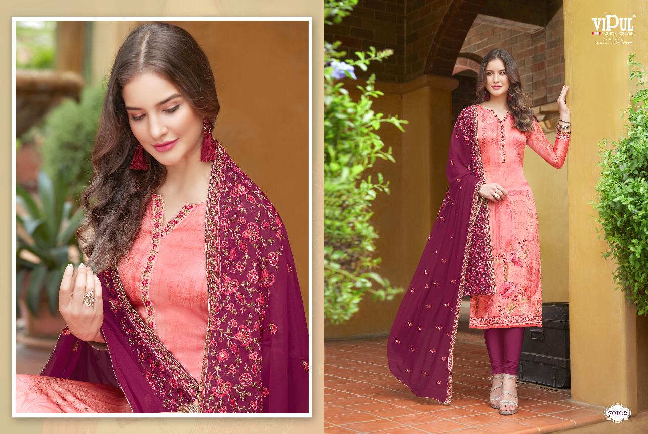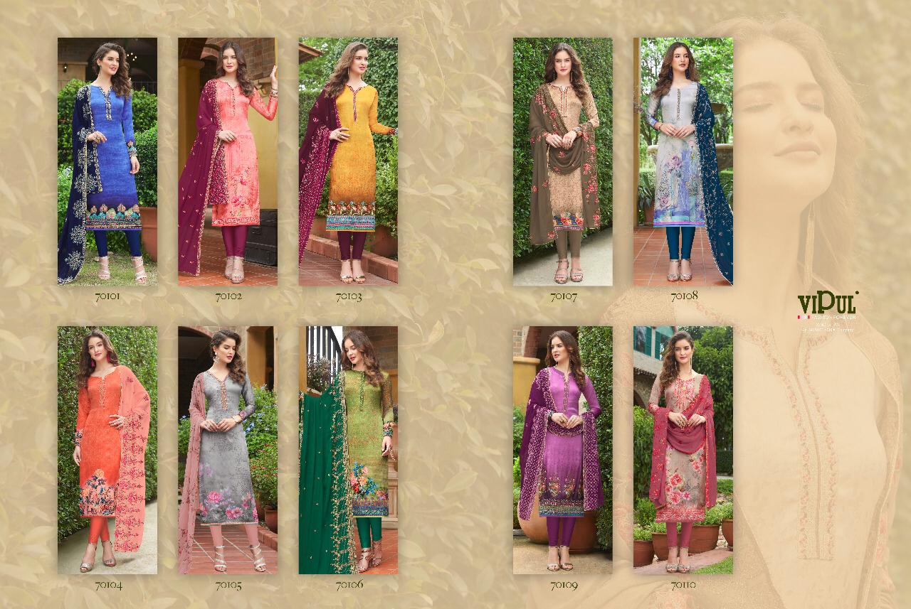 Buy Online Eliza By Vipul 70101 Series Fancy Satin Silk Salwar Kameez Catlog Wholesaler Surat 10 Pcs of Full Catalogue at Wholesale Price. Looking for Eliza By Vipul 70101 Series Fancy Satin Silk Salwar Kameez Catlog Wholesaler Surat Full Catalouge at Best Price? Buy Now Eliza By Vipul 70101 Series Fancy Satin Silk Salwar Kameez Catlog Wholesaler Surat at Wholesale Rate of Rs 15340 with Total 10 Pcs from authroized dealer and supplier of VIPUL Brand. Cost of Each piece is just only Rs 1534 which is very low and affordable price to resale the product in your retail store ,This is Surat based Wholesale Supplier & Dealer of VIPUL Brand. Click on Brand name to Know more about VIPUL Brand's products.Call or Whatsapp on 9898838984 for booking or enquiry