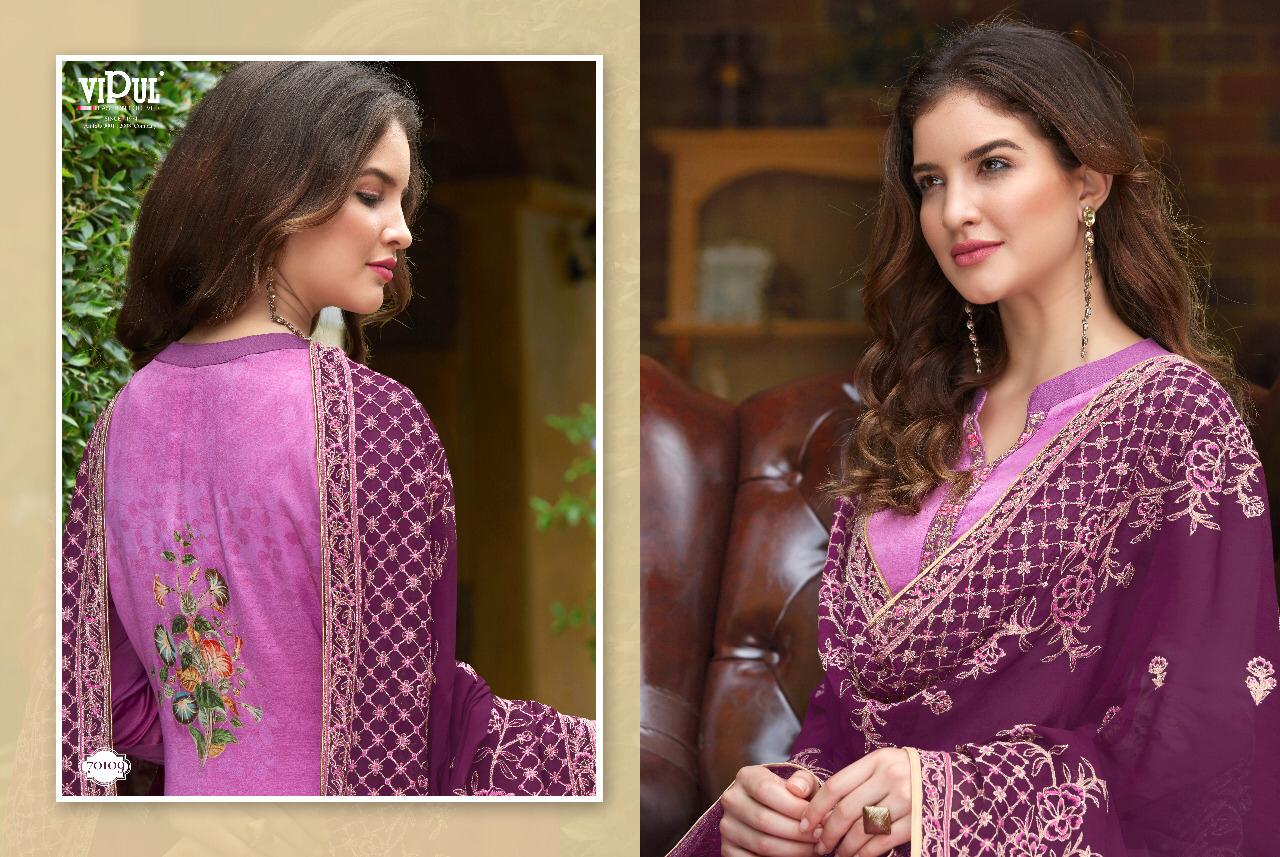Vipul launching D cat 701, Eliza. Top Satin Silk print with embroidery, Georgette dupatta with heavy work & crepe bottom. Rate -1534 per pcs * Set & Loose & Singel & Multiple * GST 5 Percent Extra. Delivery- Running Booking on whatsapp +919898838984 |