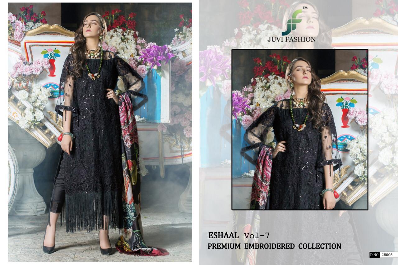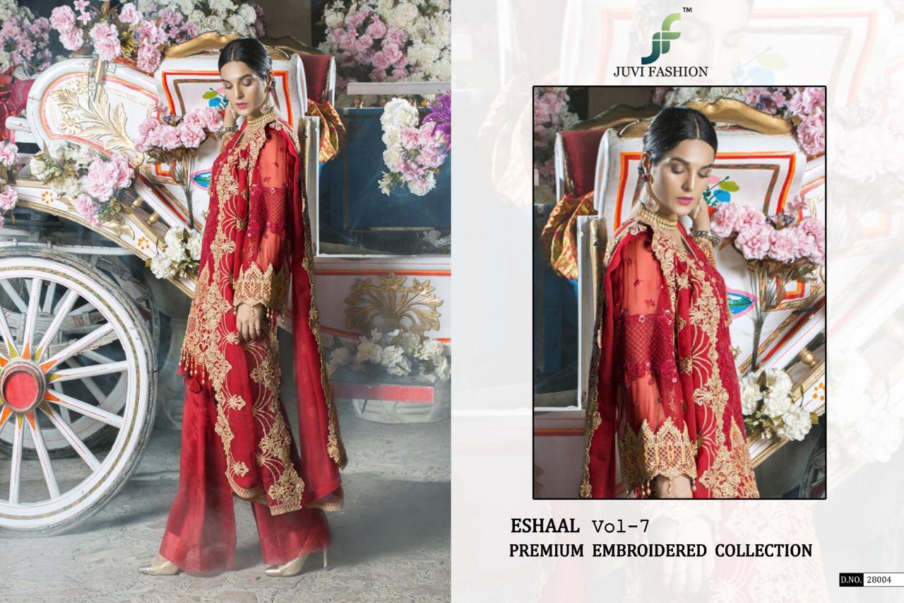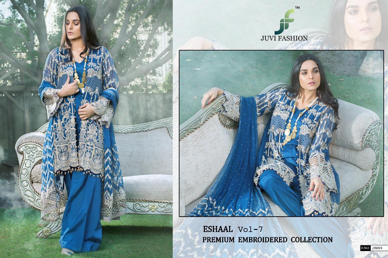 Buy Online Eshaal Vol 7 By Juvi Fashion 28001 Series Designer Georgette Pakistani Style Salwar Kameez Collection Wholesale Supplier Surat 6 Pcs of Full Catalogue at Wholesale Price. Looking for Eshaal Vol 7 By Juvi Fashion 28001 Series Designer Georgette Pakistani Style Salwar Kameez Collection Wholesale Supplier Surat Full Catalouge at Best Price? Buy Now Eshaal Vol 7 By Juvi Fashion 28001 Series Designer Georgette Pakistani Style Salwar Kameez Collection Wholesale Supplier Surat at Wholesale Rate of Rs 7194 with Total 6 Pcs from authroized dealer and supplier of Brand. Cost of Each piece is just only Rs 1199 which is very low and affordable price to resale the product in your retail store ,This is Surat based Wholesale Supplier & Dealer of Brand. Click on Brand name to Know more about Brand's products.Call or Whatsapp on 9898838984 for booking or enquiry