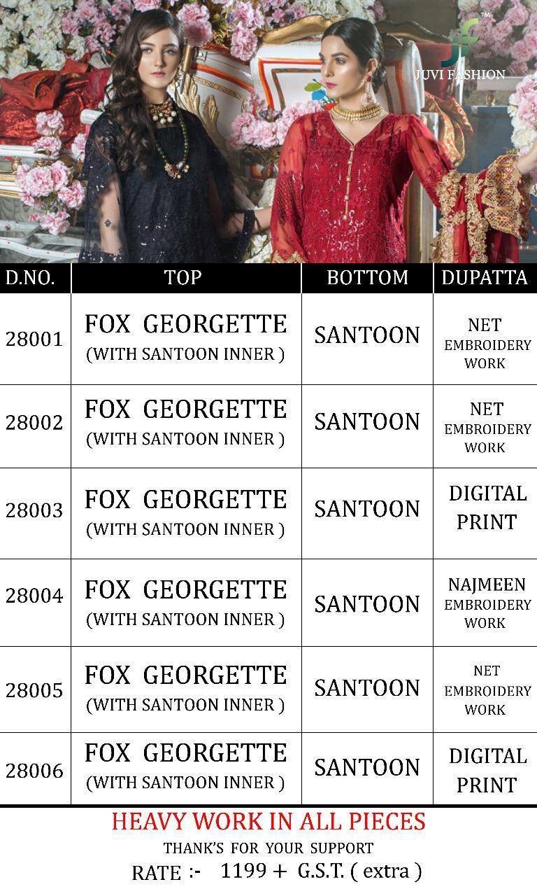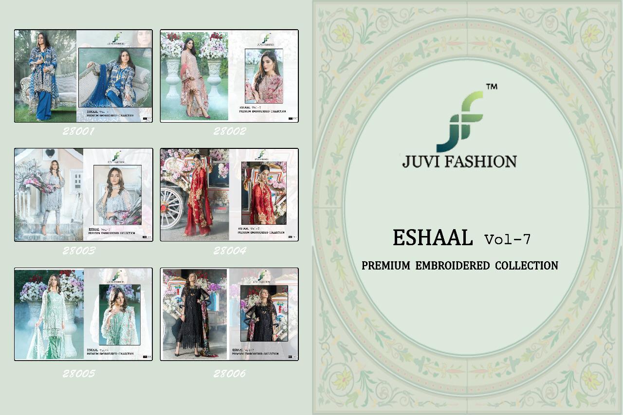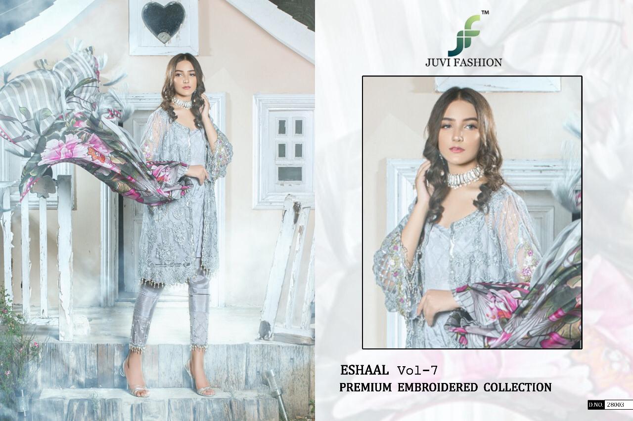 Buy Online Eshaal Vol 7 By Juvi Fashion 28001 Series Designer Georgette Pakistani Style Salwar Kameez Collection Wholesale Supplier Surat 6 Pcs of Full Catalogue at Wholesale Price. Looking for Eshaal Vol 7 By Juvi Fashion 28001 Series Designer Georgette Pakistani Style Salwar Kameez Collection Wholesale Supplier Surat Full Catalouge at Best Price? Buy Now Eshaal Vol 7 By Juvi Fashion 28001 Series Designer Georgette Pakistani Style Salwar Kameez Collection Wholesale Supplier Surat at Wholesale Rate of Rs 7194 with Total 6 Pcs from authroized dealer and supplier of Brand. Cost of Each piece is just only Rs 1199 which is very low and affordable price to resale the product in your retail store ,This is Surat based Wholesale Supplier & Dealer of Brand. Click on Brand name to Know more about Brand's products.Call or Whatsapp on 9898838984 for booking or enquiry