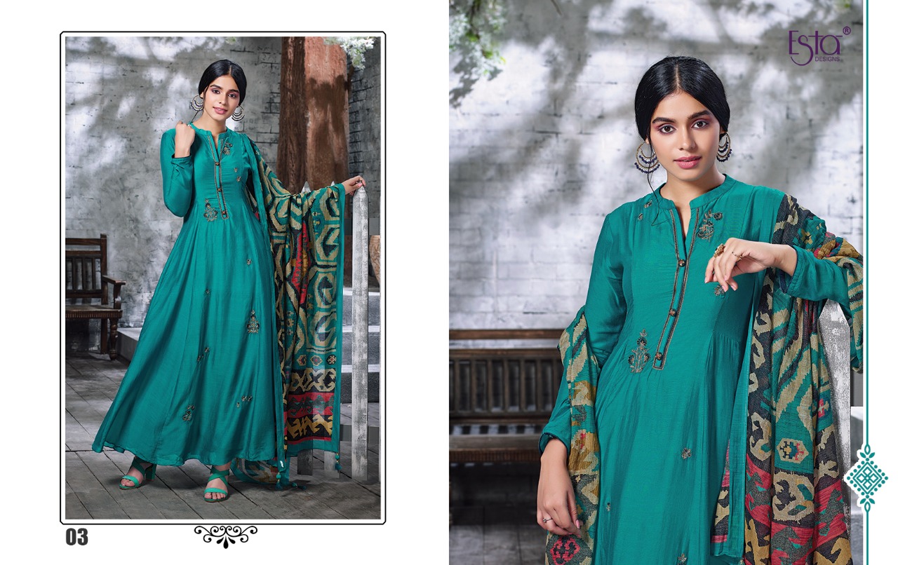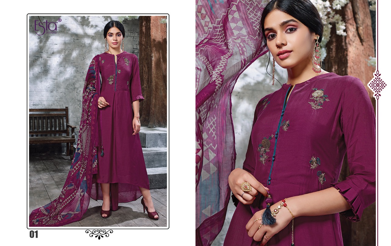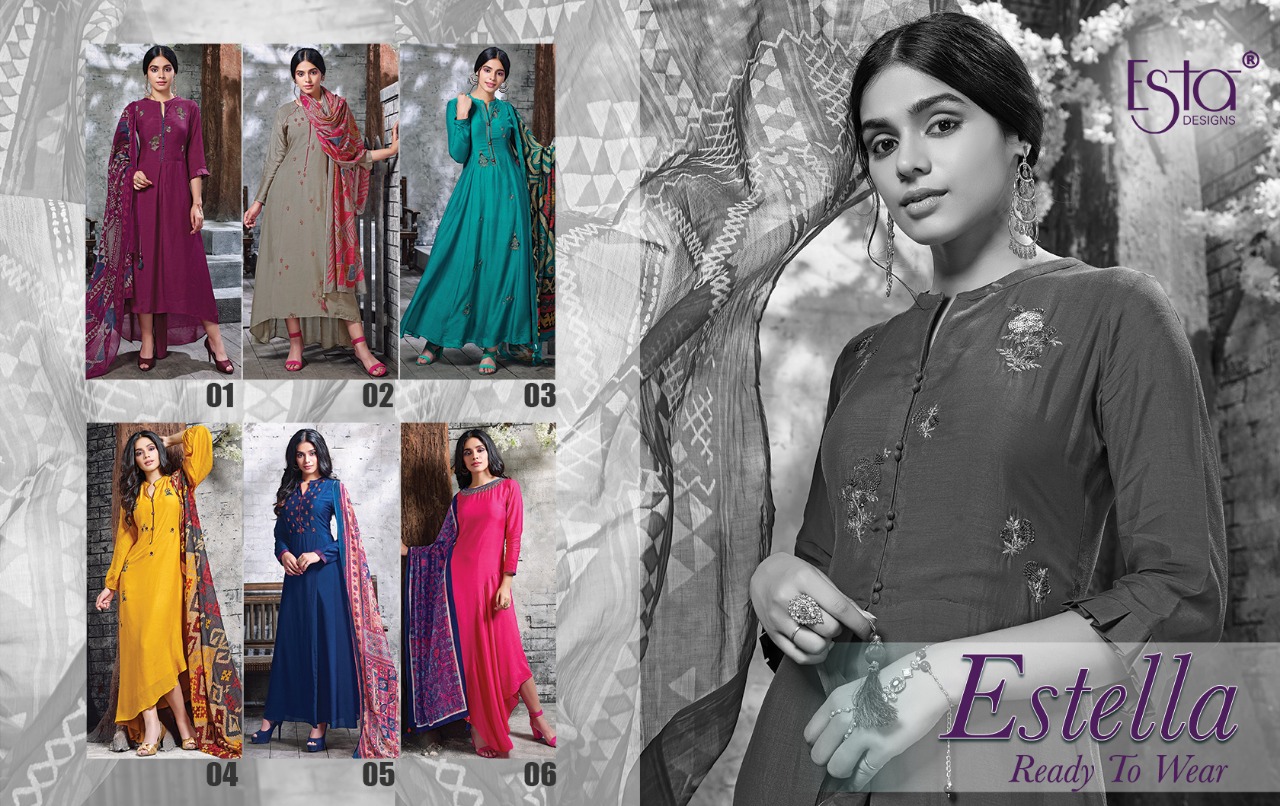 Estella By Esta Desings Model Silk Handwork Desinger Ready To Wear Fancy Kurtis With Duppata Wholesale Supplier And Dealer Surat