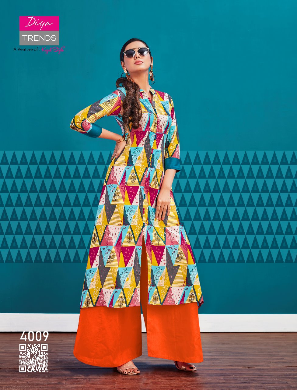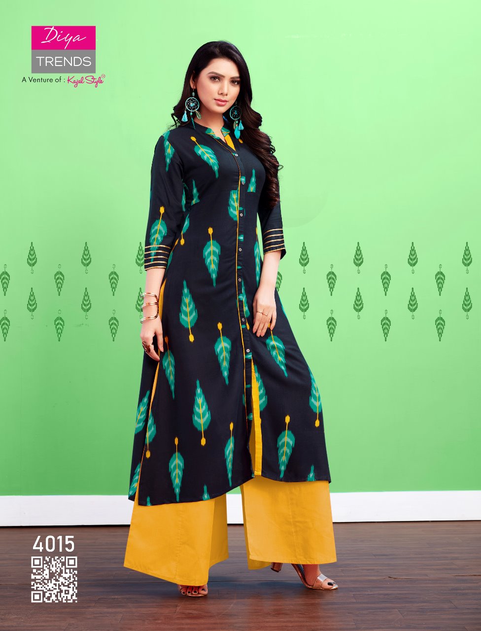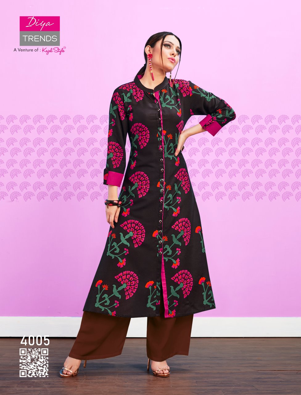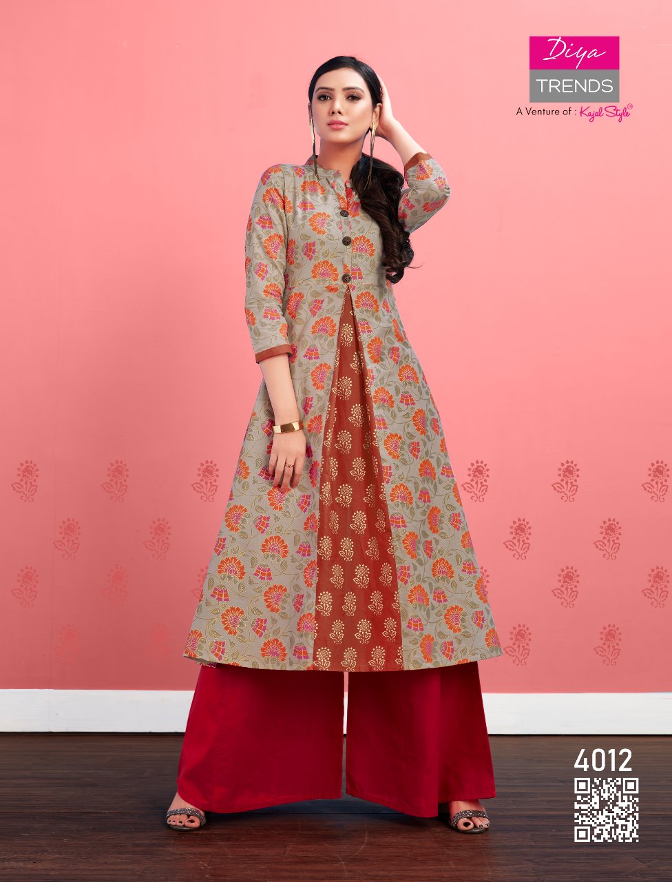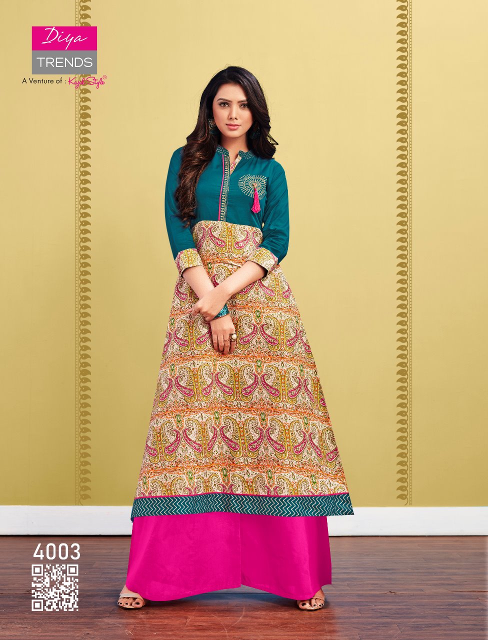 Buy Online Ethnicity Vol 4 By Diya Trendz 4001 Series Fancy Cotton Reyon Kurti Collection Wholesaler Surat 16 Pcs of Full Catalogue at Wholesale Price. Looking for Ethnicity Vol 4 By Diya Trendz 4001 Series Fancy Cotton Reyon Kurti Collection Wholesaler Surat Full Catalouge at Best Price? Buy Now Ethnicity Vol 4 By Diya Trendz 4001 Series Fancy Cotton Reyon Kurti Collection Wholesaler Surat at Wholesale Rate of Rs 5760 with Total 16 Pcs from authroized dealer and supplier of Brand. Cost of Each piece is just only Rs 360 which is very low and affordable price to resale the product in your retail store ,This is Surat based Wholesale Supplier & Dealer of Brand. Click on Brand name to Know more about Brand's products.Call or Whatsapp on 9898838984 for booking or enquiry