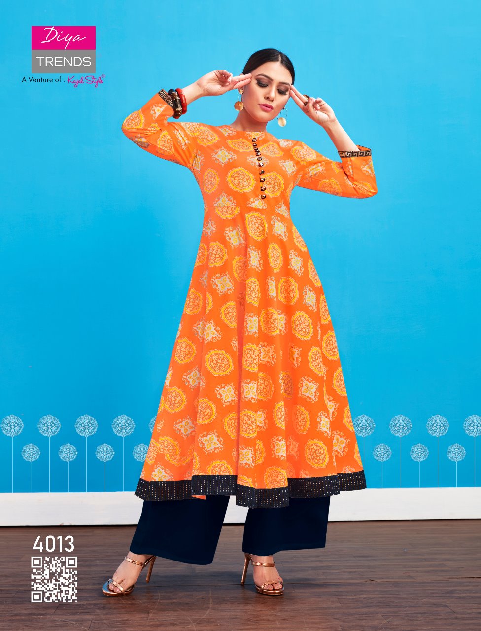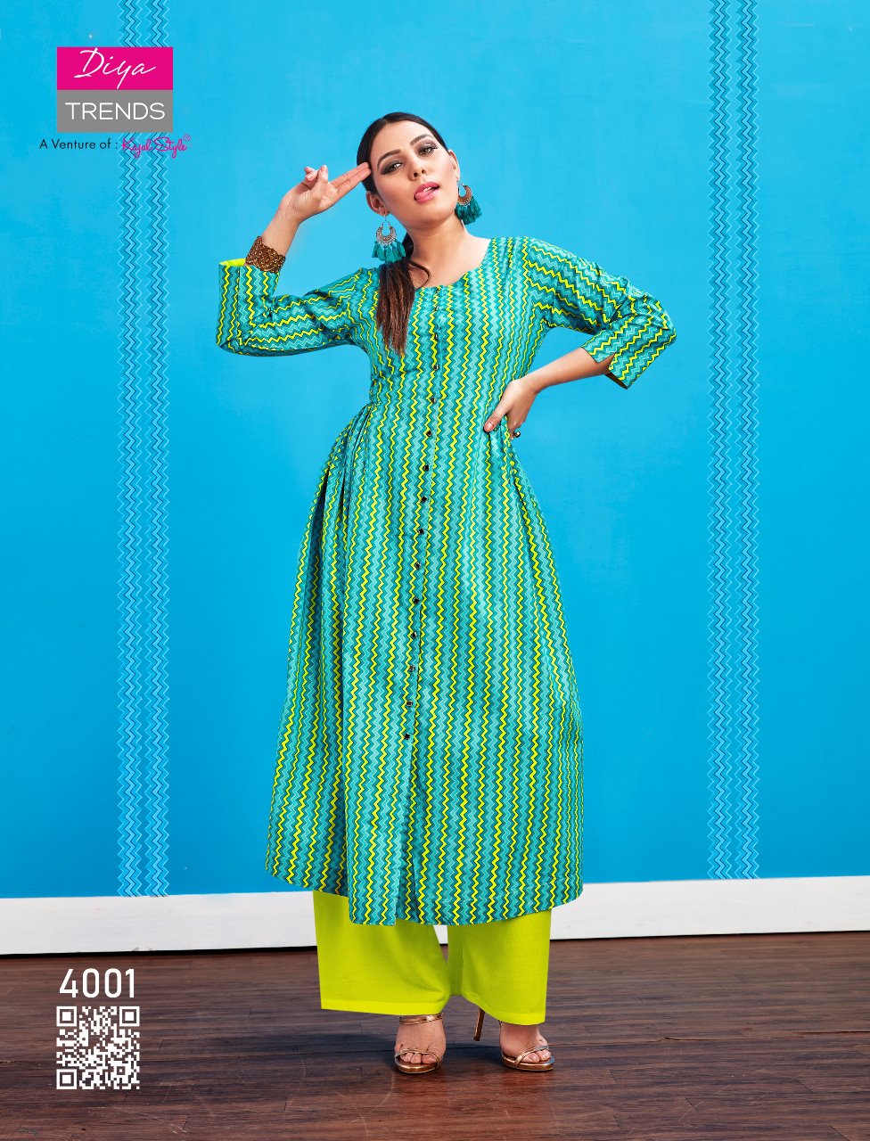 Ethnicity Vol 4 By Diya Trendz 4001 Series Fancy Cotton Reyon Kurti Collection Wholesaler Surat