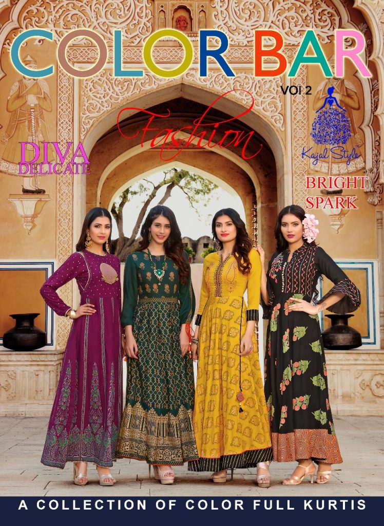 Fashion Colorbar Vol 2 By Kajal Style Heavy Reyon Printed Kurtis Wholesale Supplier And Dealer Gujarat