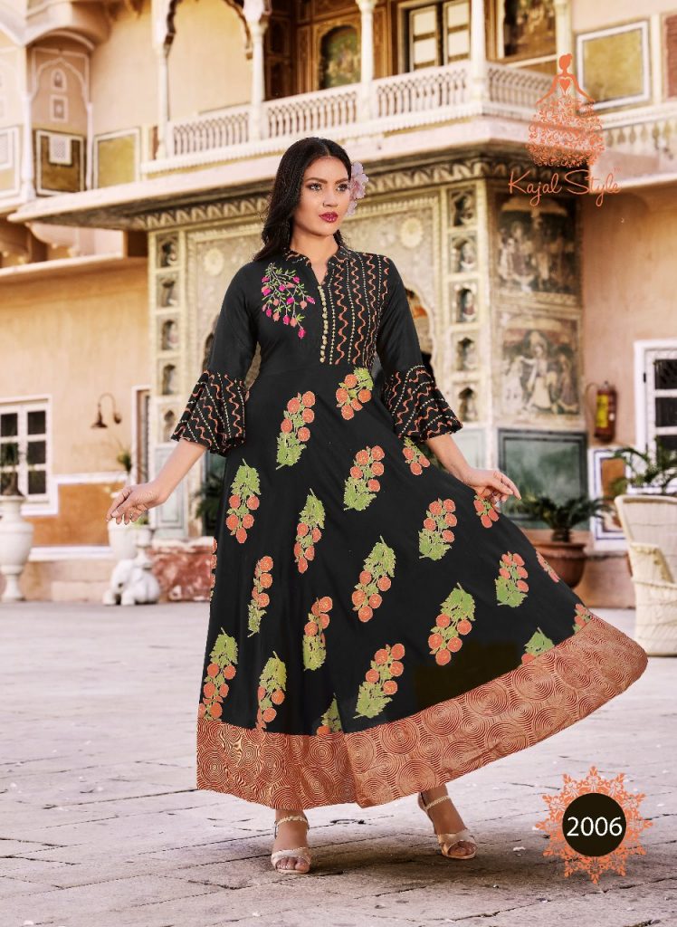 ? ? ? ? *Kajal Style* Catalogue Name:- *Fashion _Colorbar_ vol.2* ?Details *?Fabrics* :- ?Heavy rayon (14 kg) with *pal print* ? *Embroidery work* *?Size* :- M(19) L(20) XL(22) XXL(23) 3xl(24) *? Length* :--> *52+* *?Designs* :- 8pcs Full catalog Rate 680+gst tax 5%tax Limited stock ..... ??????hurryyy uppp....Book your order now...????????? *(Book your order with your GST Number |