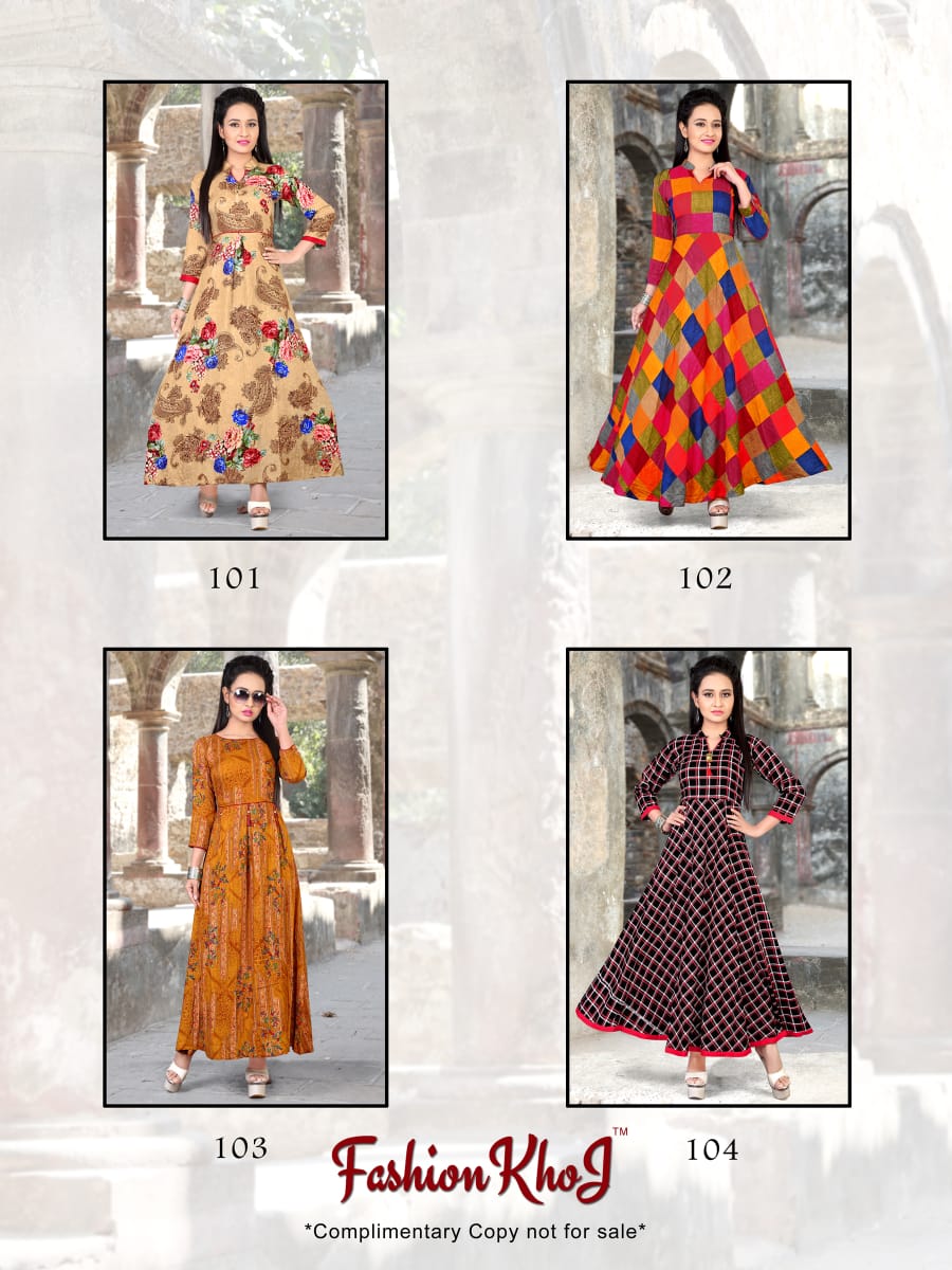 Fashion Khoj Koyna Vol 1 101 Series Reyon Printed Kurti Catlog Wholesale Dealer Surat
