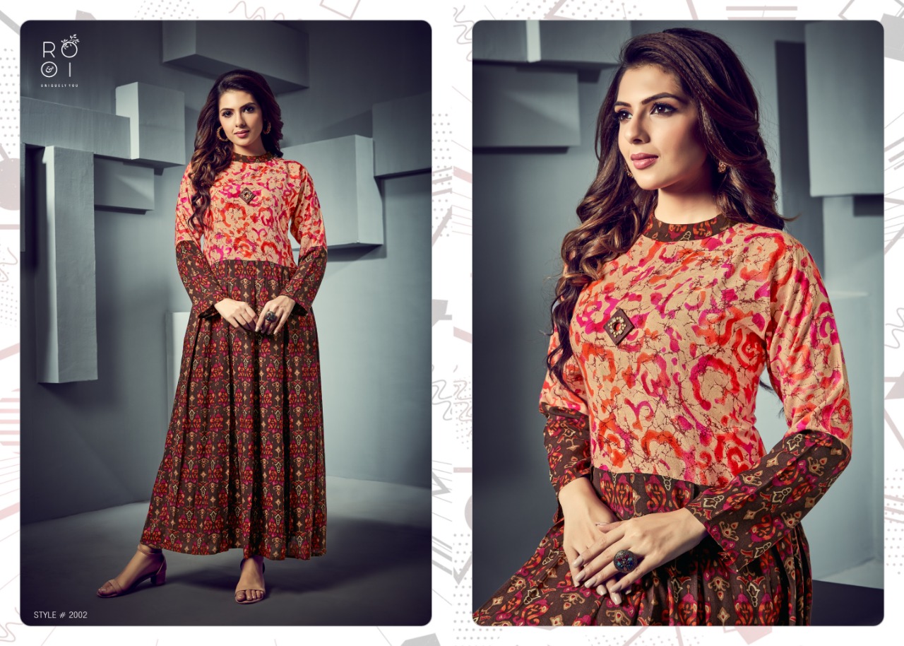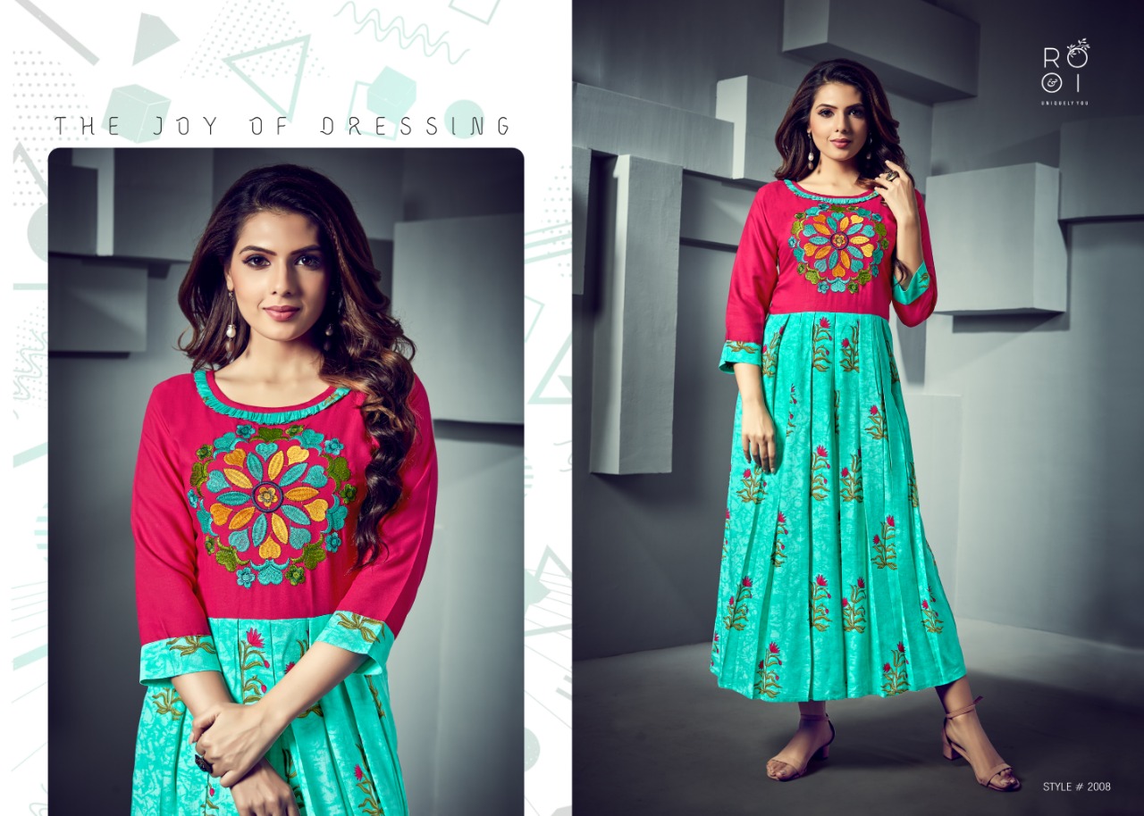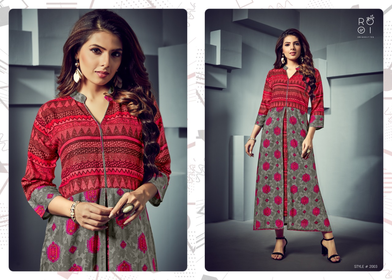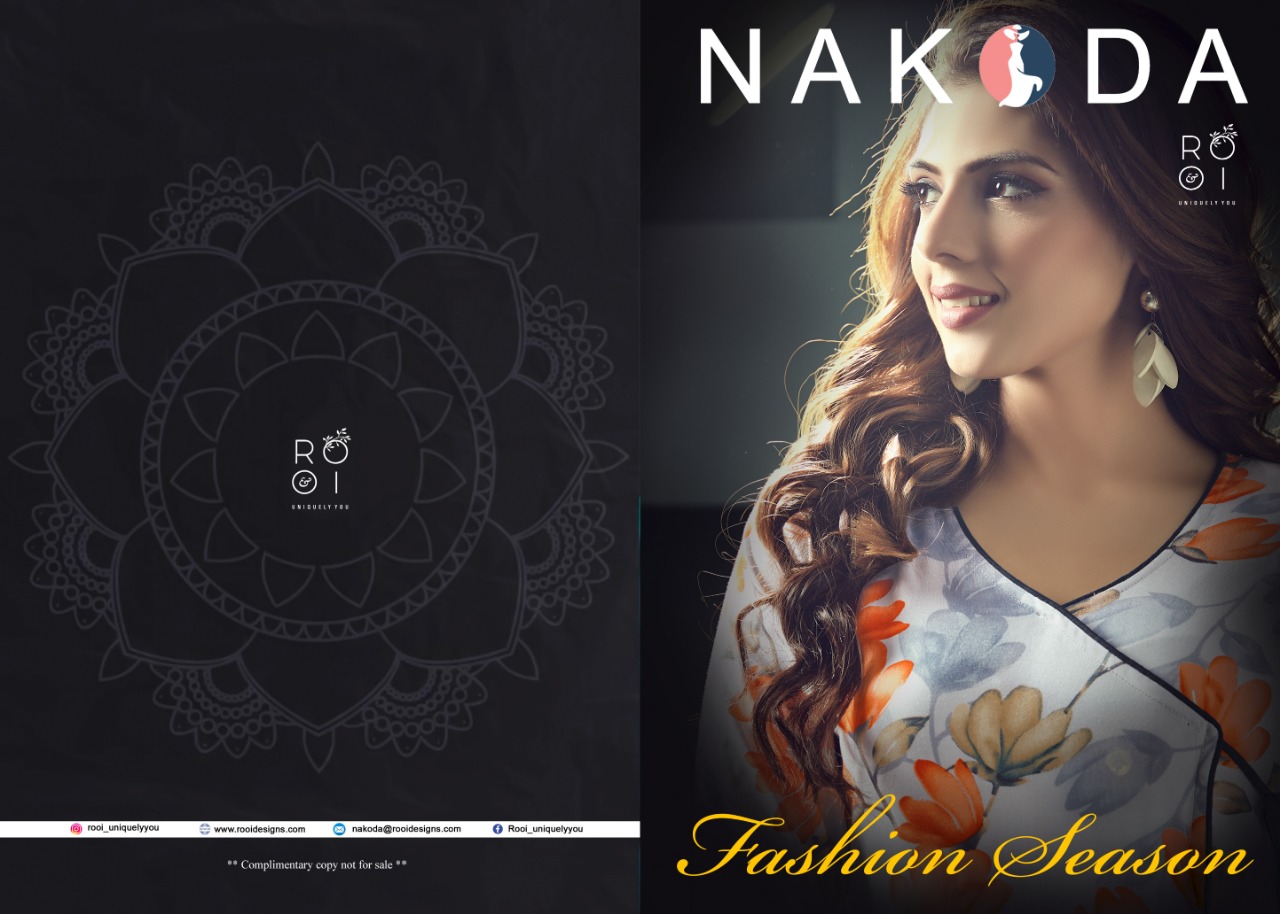 ?? *ROOI* ?? CATALOG NAME: *FASHION SEASON* FABRICS : *HEAVY RAYON PRINT WITH EMBRIODERY WORK* SIZE : *L (20) XL (22) XXL (23)* TOTAL DESIGN : *8* *LENGTH :-> 49+* *RATE :- 499 + GST* |
