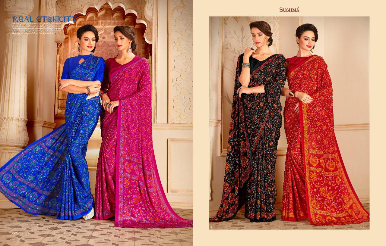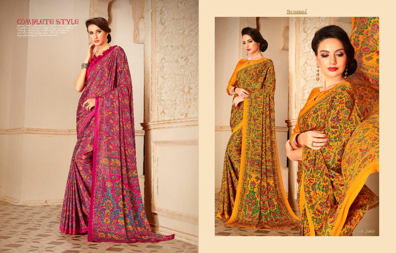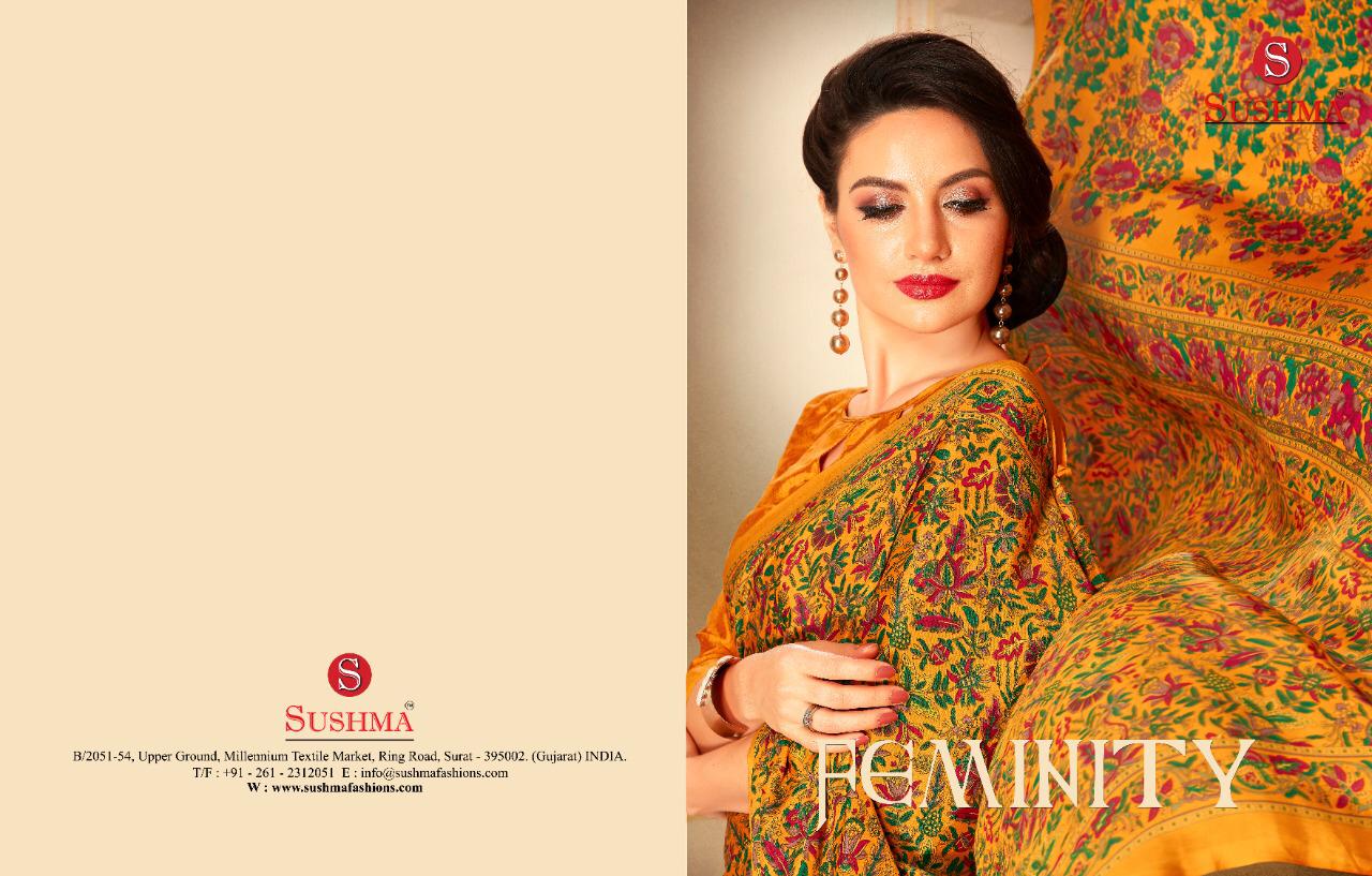Buy Online Feminity By Sushma Crape Sarees Wholesale Supplier And Dealer Surat 20 Pcs of Full Catalogue at Wholesale Price. Looking for Feminity By Sushma Crape Sarees Wholesale Supplier And Dealer Surat Full Catalouge at Best Price? Buy Now Feminity By Sushma Crape Sarees Wholesale Supplier And Dealer Surat at Wholesale Rate of Rs 11300 with Total 20 Pcs from authroized dealer and supplier of SUSHMA Brand. Cost of Each piece is just only Rs 565 which is very low and affordable price to resale the product in your retail store ,This is Surat based Wholesale Supplier & Dealer of SUSHMA Brand. Click on Brand name to Know more about SUSHMA Brand's products.Call or Whatsapp on 9898838984 for booking or enquiry