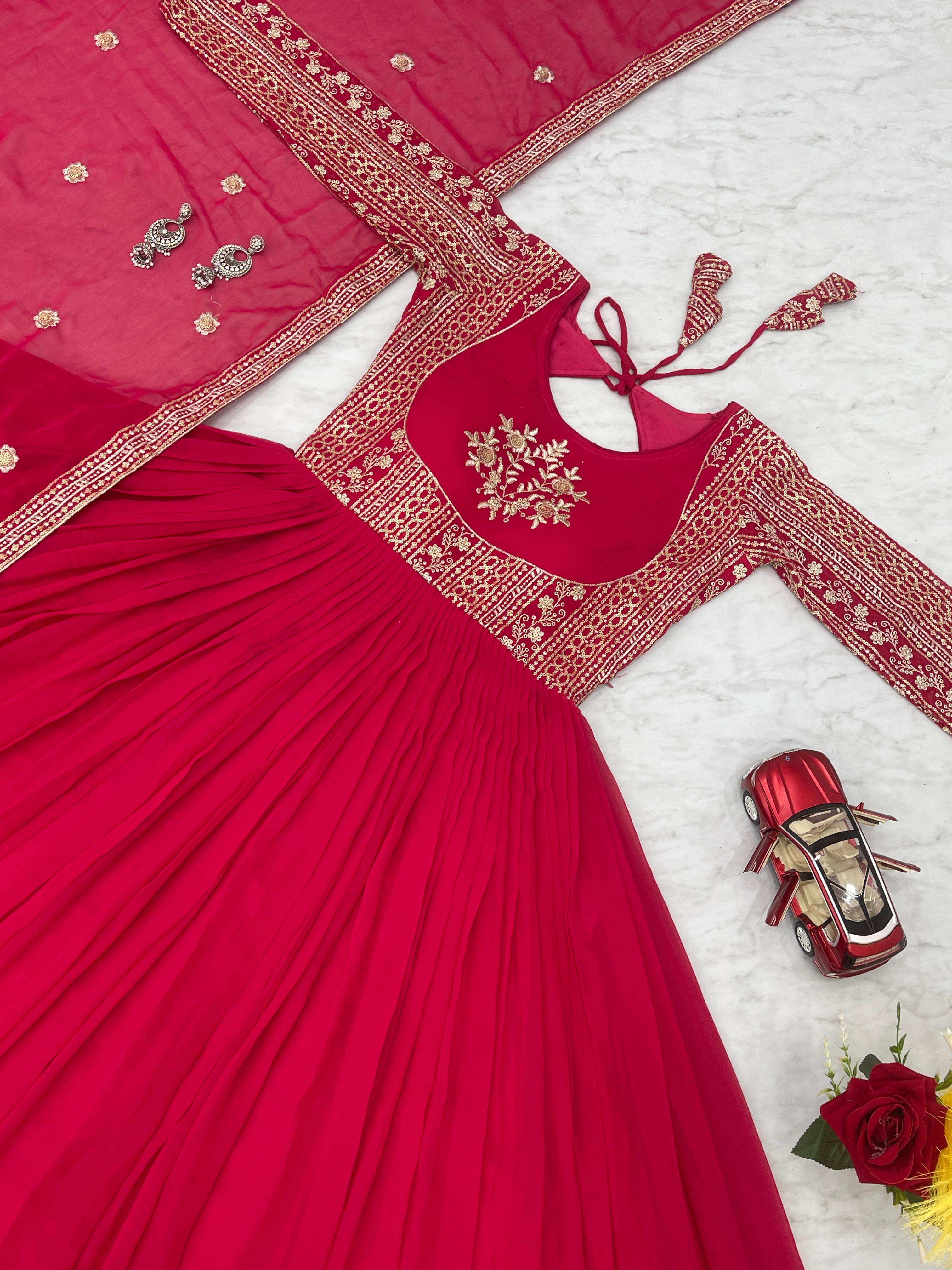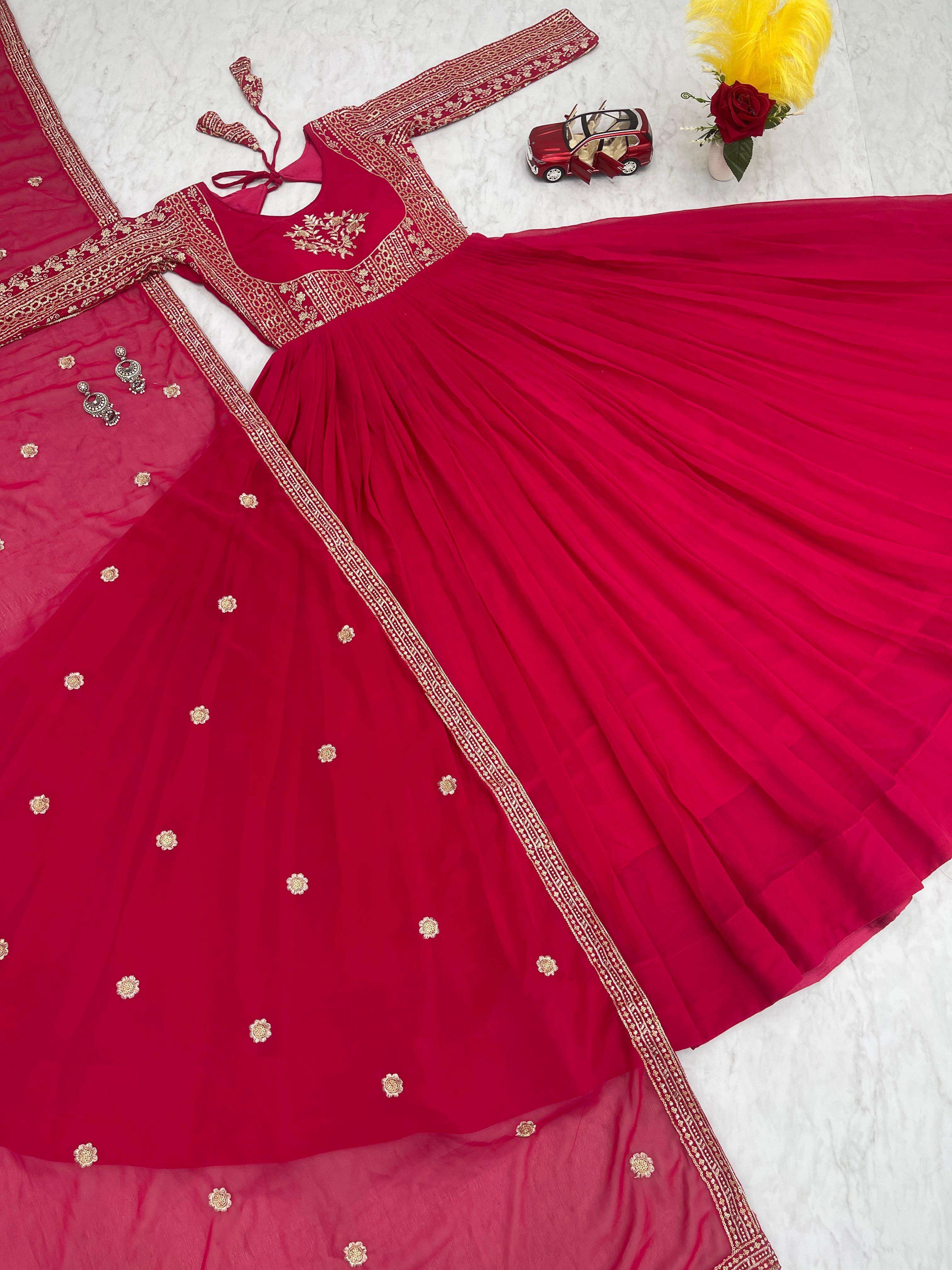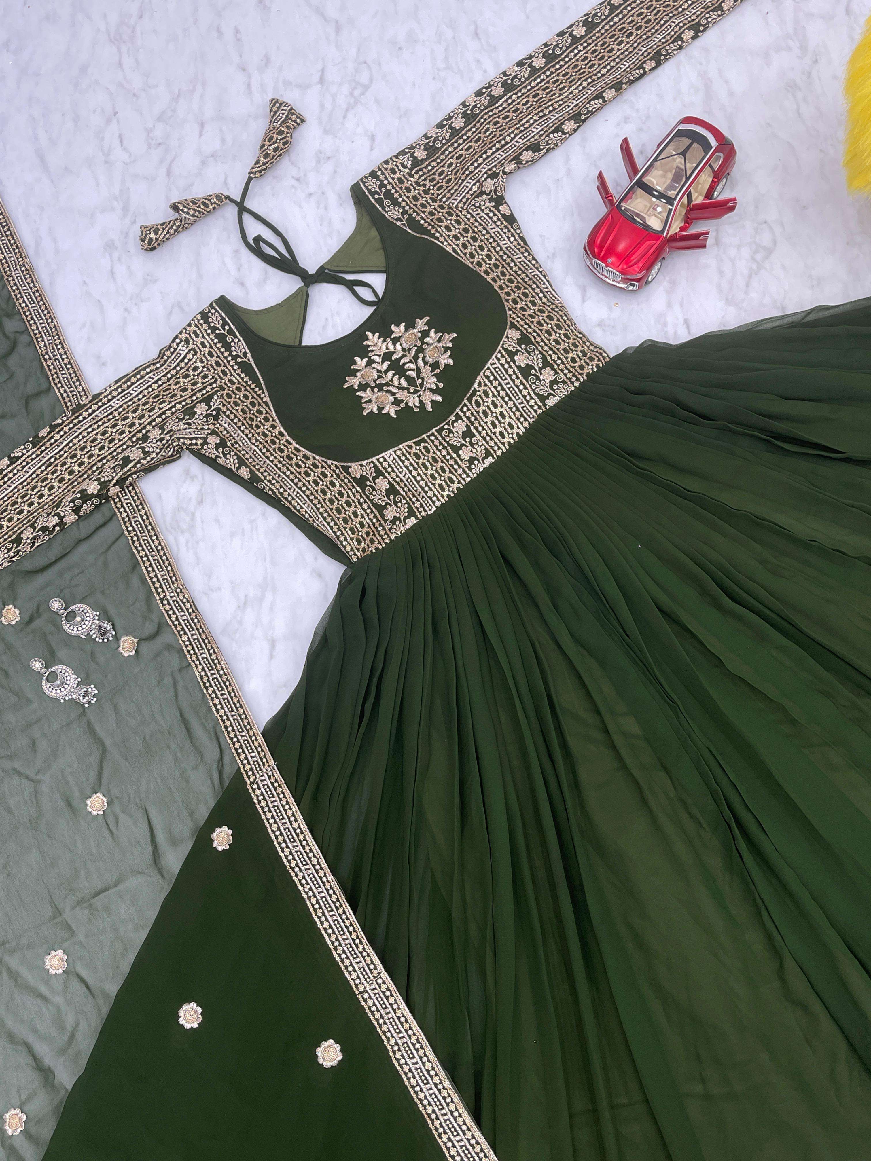 *👗Gown👗* *Fabric:-* Fox Georgette *Work:-* Heavy sequence Embroidery Work *Inner:-* Micro Cotton *Flair*:-3.50 mtr *Size:-* M upto L margin XL upto 2xl margin *(Fully Stitched)*