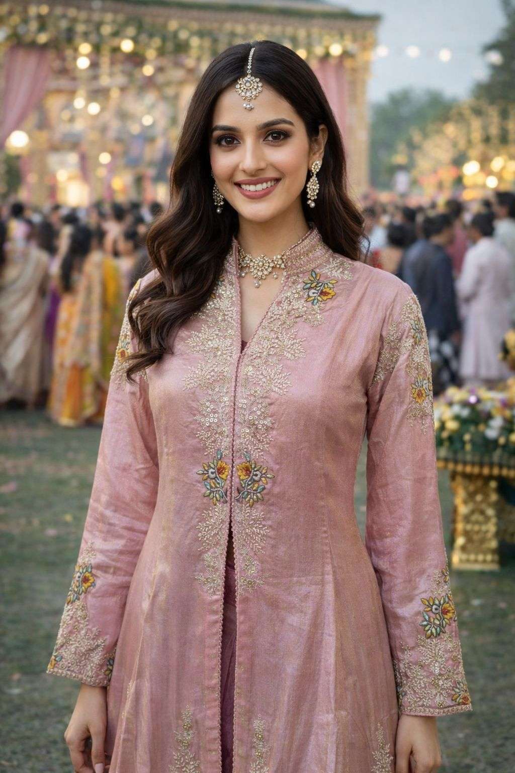 FABRIC - PREMIUM REAL ORGANZA SILK WITH INNER MICRO COTTON( STYLIST LOOK FRONT AND BACK HEAVY BEADS & SEQUENCE EMBROIDERED WITH CHINON BLOUSE AND PLAZZO )